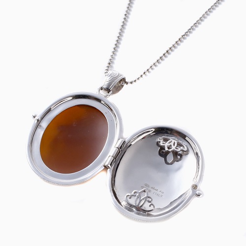 高い技術力と洗練されたデザイン性により、 イタリアのカメオといえばDILUCAといわれるほど、世界中で愛されています。CAMEO ITALIANOブランドは歴史と伝統のカメオに 現実的なアレンジを施され、トーレ・デル・グレコのマエストロ達により創造されている、見事なまでの芸術的なジュエリーをお楽しみください。立体的なキリストが見る人に安らぎと、優しい印象を与えてくれる芸術的なカメオデザインは、大切な人へのプレゼントや、毎日の自分へのご褒美にもおすすめです!写真は最大2枚入れることが可能なので、大切な想い出や、最愛の家族やペットの写真を入れて肌身離さず持ち歩けます。カメオロケットペンダントは、専用のケースに入れてのお届けとなります。※製造上、始めはロケットの開閉が硬くなっていますが、使用していると馴染んでいき、開けやすくなります。最初のうちはロケットの隙間に薄めのカードなどを入れると比較的開けやすいです。