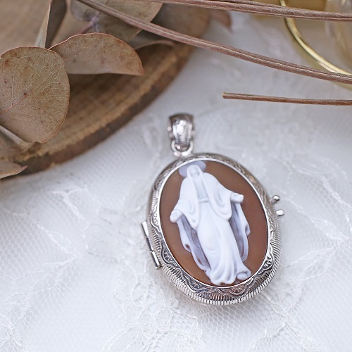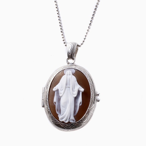 イタリア製 〈CAMEO ITALIANO〉 手掘りシェル カメオ ロケットペンダント キリスト 7018-DL22