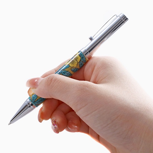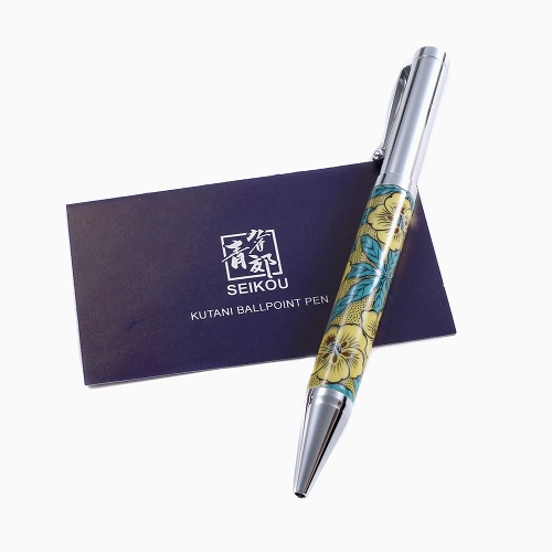 絵付けを施したパーツをジョイントして出来上がる九谷焼のボールペン。