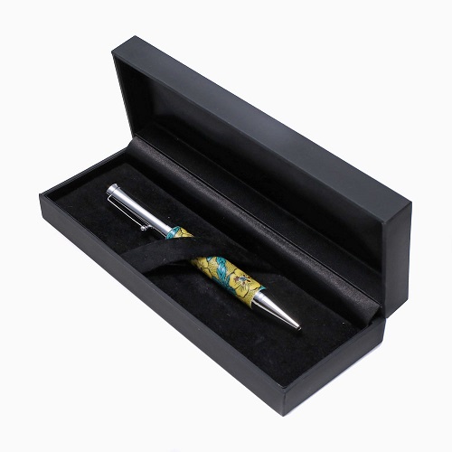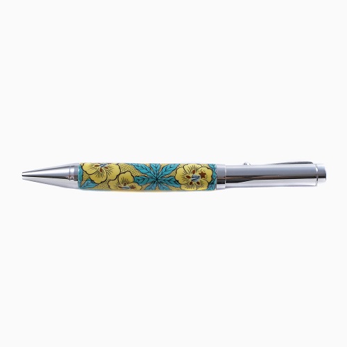 九谷焼は、石川県南部で生産される色絵の磁器です。久谷五彩(赤、黄、緑、紺、紫)という色鮮やかな上絵が特徴です。上絵つきとは、本焼きした陶磁器の釉薬の上に顔料で模様を描き、再度焼く技法です。その歴史は、江戸時代に加賀藩が良質な磁石を発見したのを機に、殖産政策として始められたとされたいます。上ステレンスのボディに筒状のニューセラミックの生地に絵付けを施したパーツをジョイントして出来上がる九谷焼のボールペン。程良い重さがあり、書き味も滑らかで大変使いやすく、まさに日常使いが出来る九谷焼となっております。インクが切れたとき用の替え芯1本お付けしております♪無料でハイセンスなラッピングもございます!