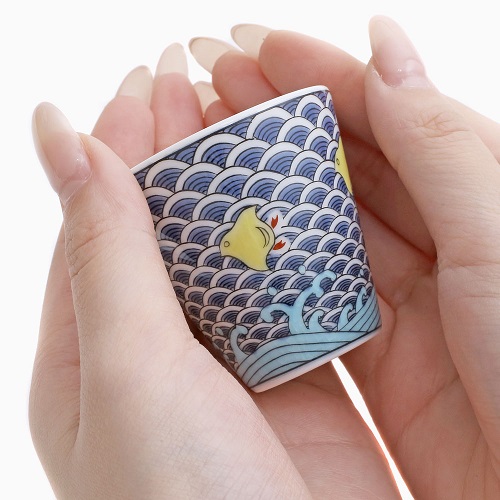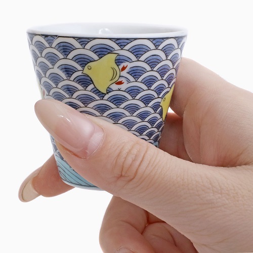 そんな九谷焼を使った、上品な色合いの色鮮やかなで素敵なお猪口です。