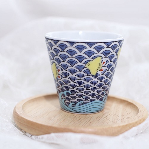 九谷焼は、石川県南部で生産される色絵の磁器です。久谷五彩(赤、黄、緑、紺、紫)という色鮮やかな上絵が特徴です。上絵つきとは、本焼きした陶磁器の釉薬の上に顔料で模様を描き、再度焼く技法です。その歴史は、江戸時代に加賀藩が良質な磁石を発見したのを機に、殖産政策として始められたとされたいます。そんな九谷焼を使った、上品な色合いの色鮮やかなで素敵なお猪口です。オシャレなデザインでおうちのインテリアにもおすすめです。お酒やウィスキー用以外にも、小さい文房具やアクセサリーを入れるなど、用途はさまざまオシャレなお猪口は大切な人へのプレゼントにもお勧めです。無料でハイセンスなラッピングもございます!
