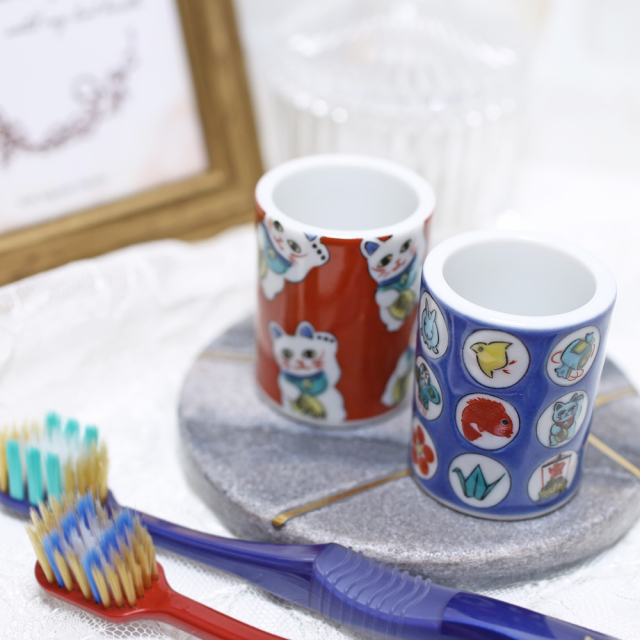| ご注意 | ※焼き物の為、色柄の風合いやサイズ・重量に多少の違い等が生じる場合があります。 ※転写紙を活用した職人による手作業での絵付けのため、多少の色ムラ等ございます。 ※参考画像は光の加減や使用のPCモニターの調整によって実際のものと多少異なって見える場合がございます。何卒ご了承くださいませ。 ※プレゼントご希望のお客様にはプレゼント包装のご対応もおこなっております。 ※撮影に使用している小道具(歯ブラシ、ペン等)は付属品ではございません。 |
