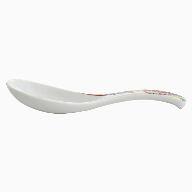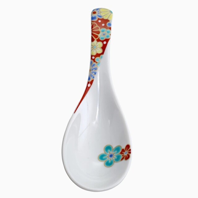 九谷焼は、石川県南部で生産される色絵の磁器です。久谷五彩(赤、黄、緑、紺、紫)という色鮮やかな上絵が特徴です。上絵つきとは、本焼きした陶磁器の釉薬の上に顔料で模様を描き、再度焼く技法です。その歴史は、江戸時代に加賀藩が良質な磁石を発見したのを機に、殖産政策として始められたとされたいます。そんな九谷焼を使った、上品な色合いの色鮮やかなで素敵なれんげです。オシャレなデザインでおうちのインテリアにもおすすめです。普段の食事やお鍋の時などの実用性にも優れており、色鮮やかに絵付されたお洒落なれんげは、コレクションやインテリアとして飾るのもおすすめです!
