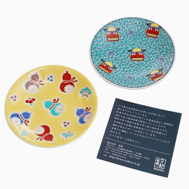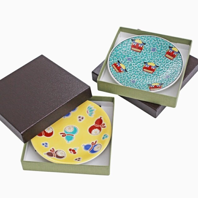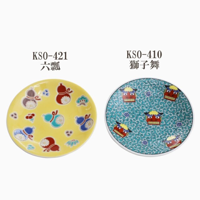 【日本製】九谷焼 獅子舞&六瓢 縁起小皿 2枚セット 7262-SK24