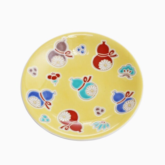 九谷焼は、石川県南部で生産される色絵の磁器です。久谷五彩(赤、黄、緑、紺、紫)という色鮮やかな上絵が特徴です。上絵つきとは、本焼きした陶磁器の釉薬の上に顔料で模様を描き、再度焼く技法です。その歴史は、江戸時代に加賀藩が良質な磁石を発見したのを機に、殖産政策として始められたとされたいます。思わず微笑むデザインと色合い、ちょっとした料理にもお使いいただける上品な小皿です。お祝いの贈り物や海外の方へのお土産としても喜ばれるアイテムです!普段使いにもおもてなしにも喜ばれるてのひらに収まる愛らしいサイズです。薬味やお漬物、一口サイズにカットしたフルーツなどちょっとしたものがおしゃれに盛り付けられます!実用性はもちろん、結婚祝い、記念日、開店祝いなどの贈り物としてや、コレクション、インテリアとしても大人気の小皿です。