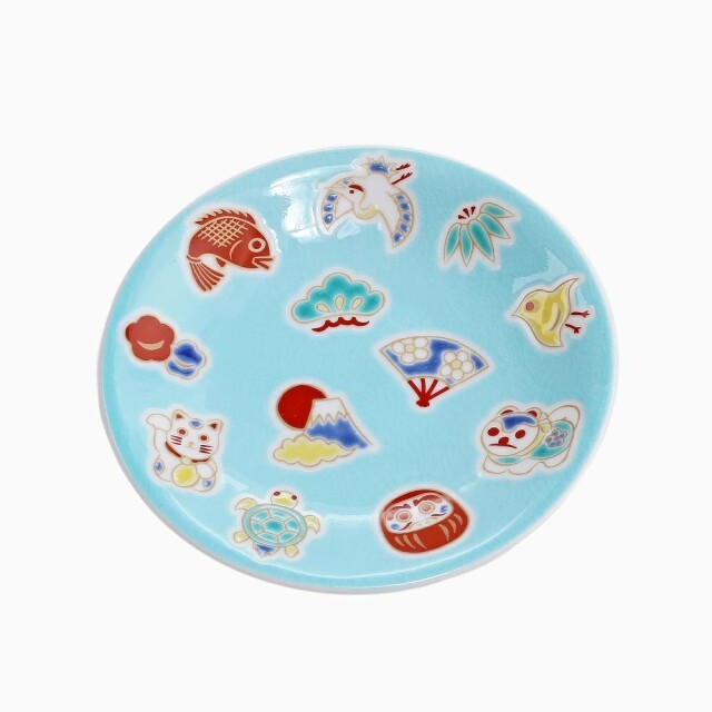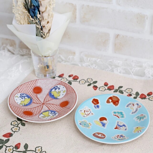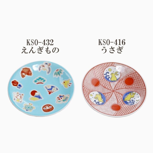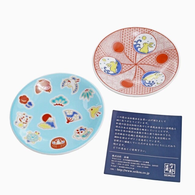【日本製】九谷焼 うさぎ&えんぎもの 縁起小皿 2枚セット 7265-SK24