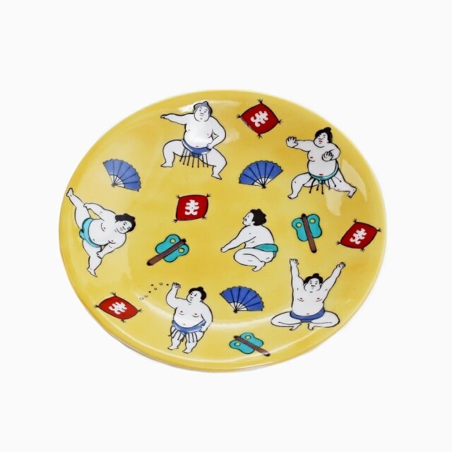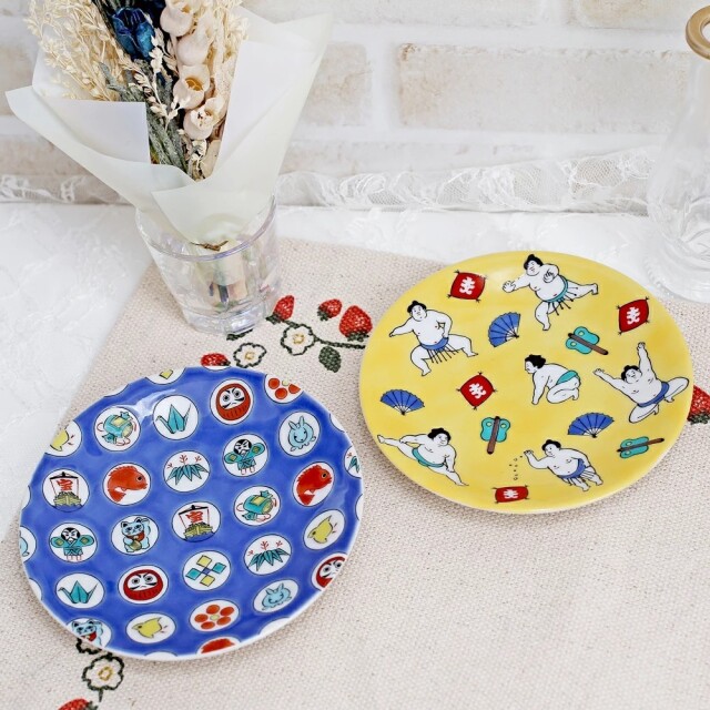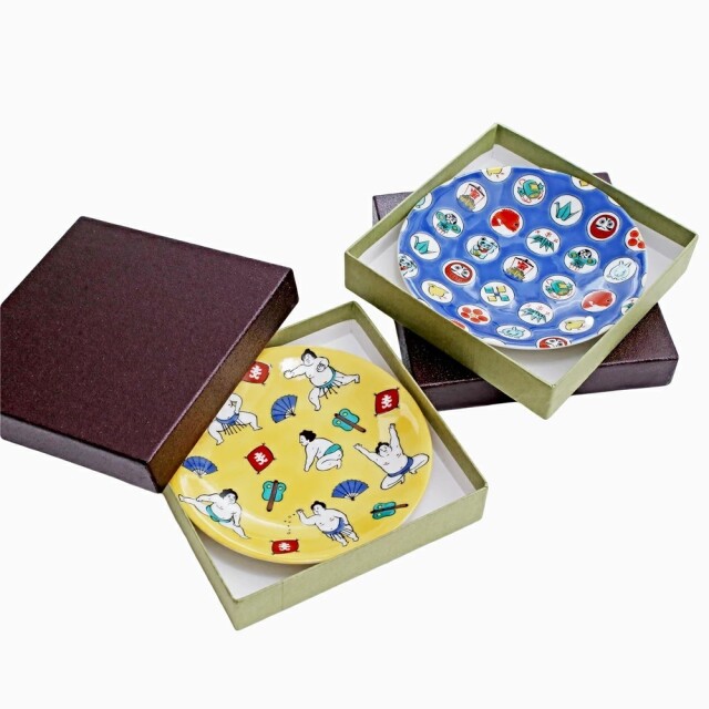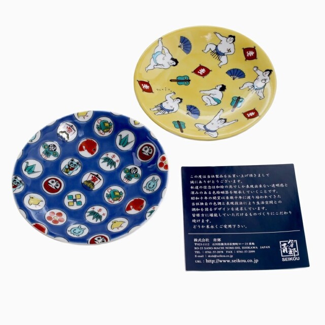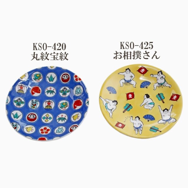 【日本製】九谷焼 丸紋宝紋&お相撲さん 縁起小皿 2枚セット 7266-SK24