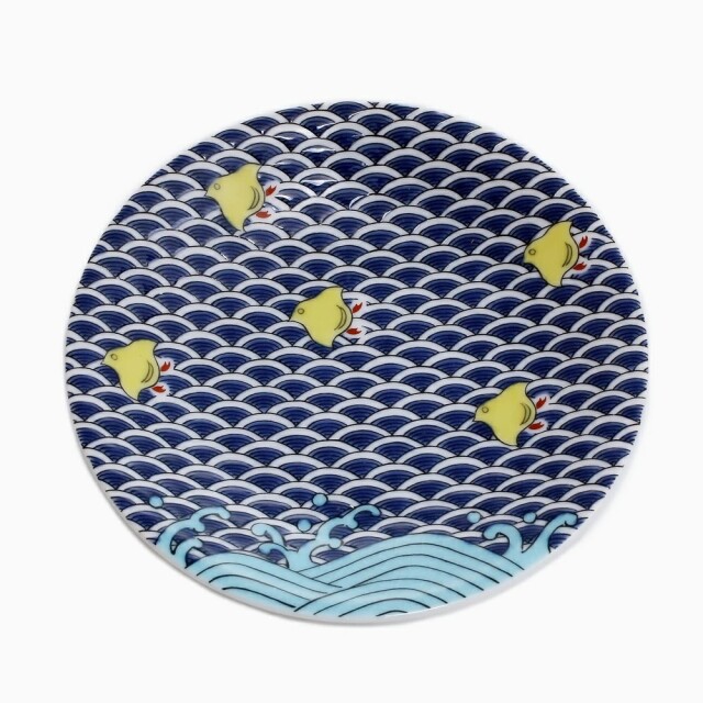 九谷焼は、石川県南部で生産される色絵の磁器です。久谷五彩(赤、黄、緑、紺、紫)という色鮮やかな上絵が特徴です。上絵つきとは、本焼きした陶磁器の釉薬の上に顔料で模様を描き、再度焼く技法です。その歴史は、江戸時代に加賀藩が良質な磁石を発見したのを機に、殖産政策として始められたとされたいます。思わず微笑むデザインと色合い、ちょっとした料理にもお使いいただける上品な小皿です。お祝いの贈り物や海外の方へのお土産としても喜ばれるアイテムです!普段使いにもおもてなしにも喜ばれるてのひらに収まる愛らしいサイズです。薬味やお漬物、一口サイズにカットしたフルーツなどちょっとしたものがおしゃれに盛り付けられます!実用性はもちろん、結婚祝い、記念日、開店祝いなどの贈り物としてや、コレクション、インテリアとしても大人気の小皿です。