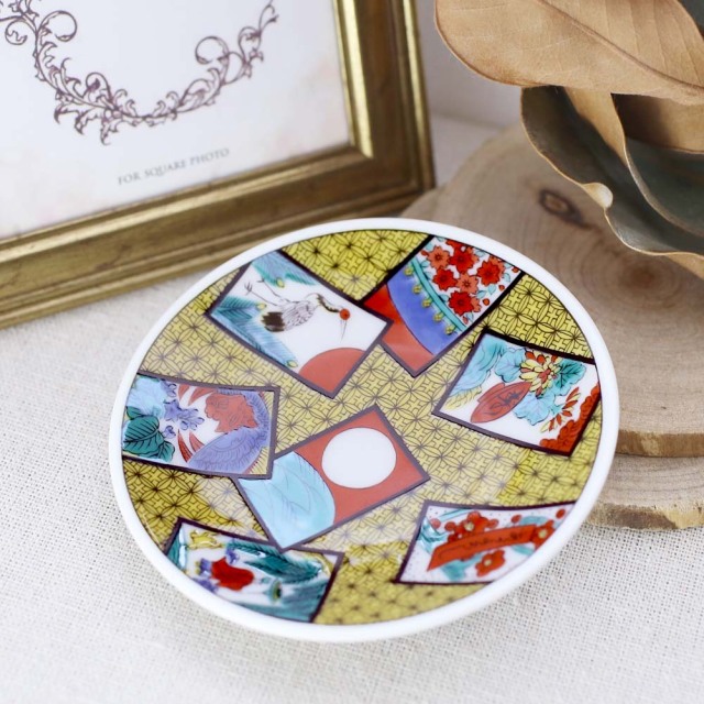 【日本製】吉祥 九谷焼 陶磁器 お皿 小皿 豆皿 花かるた 和食器 7310-SK25