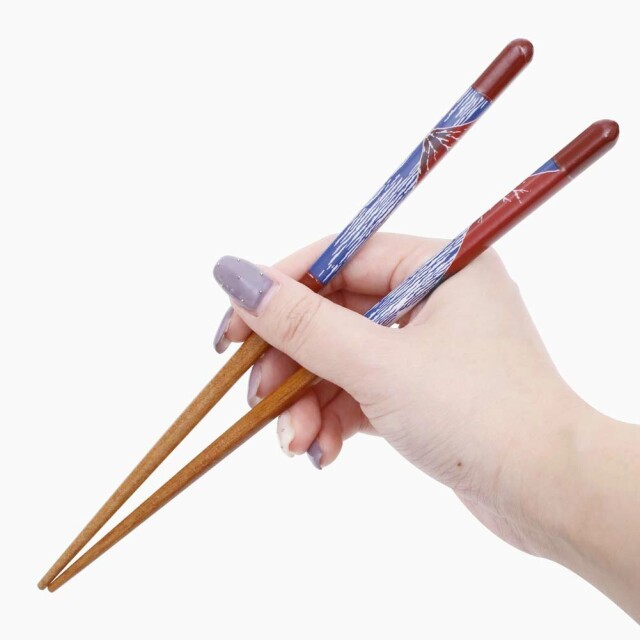 九谷焼は、石川県南部で生産される色絵の磁器です。 久谷五彩(赤、黄、緑、紺、紫)という色鮮やかな上絵が特徴です。 上絵つきとは、本焼きした陶磁器の釉薬の上に顔料で模様を描き、再度焼く技法です。 その歴史は、江戸時代に加賀藩が良質な磁石を発見したのを機に、殖産政策として始められたとされたいます。高級感ある日本の伝統的なデザインで様々な絵柄を楽しめるお箸シリーズ。青、緑、黄などの濃色を多用した華麗な色使いと大胆で斬新な絵柄が特色です。 高級感ある日本の伝統的なデザインで人気を得ています。いつもの食卓をより一層華やかに演出してくれます。ご自宅用はもちろん、記念日や、開店祝いの贈り物としても大変おすすめです。簡易な袋に入れてのお届けとなります。