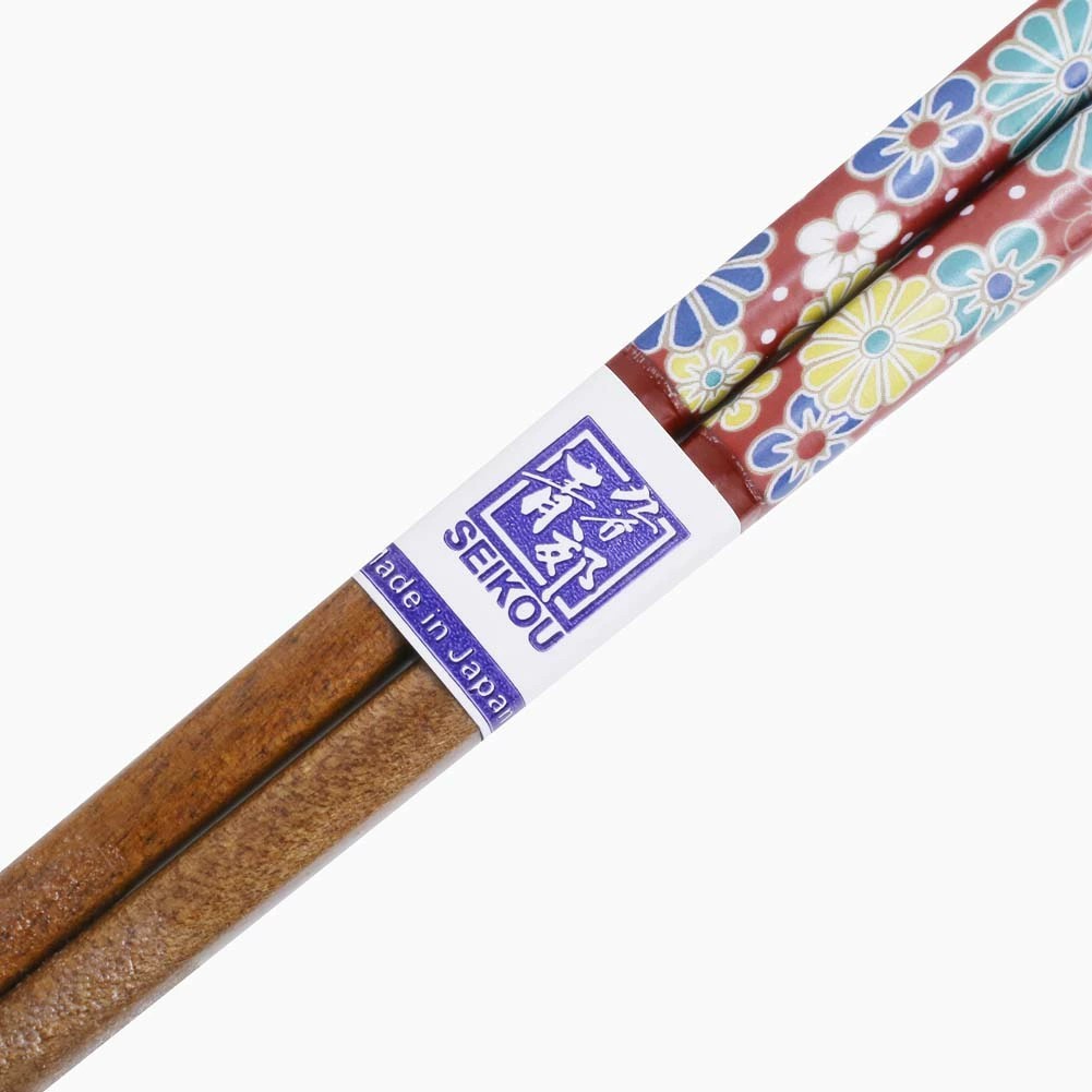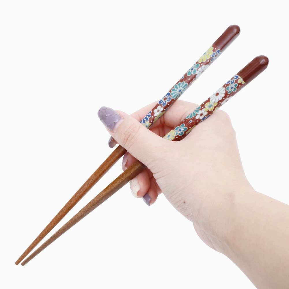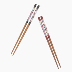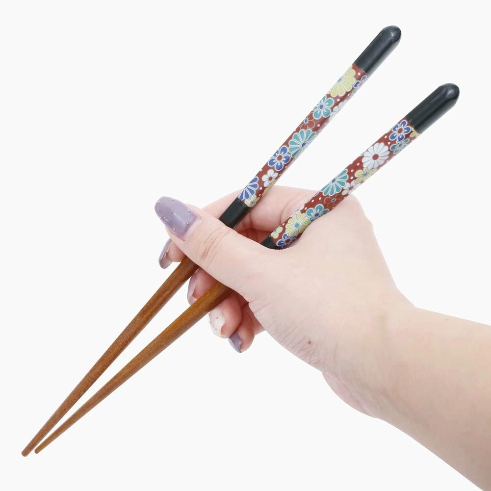 九谷焼は、石川県南部で生産される色絵の磁器です。 久谷五彩(赤、黄、緑、紺、紫)という色鮮やかな上絵が特徴です。 上絵つきとは、本焼きした陶磁器の釉薬の上に顔料で模様を描き、再度焼く技法です。 その歴史は、江戸時代に加賀藩が良質な磁石を発見したのを機に、殖産政策として始められたとされたいます。高級感ある日本の伝統的なデザインで様々な絵柄を楽しめるお箸シリーズ。青、緑、黄などの濃色を多用した華麗な色使いと大胆で斬新な絵柄が特色です。 高級感ある日本の伝統的なデザインで人気を得ています。いつもの食卓をより一層華やかに演出してくれます。ご自宅用はもちろん、記念日や、開店祝いの贈り物としても大変おすすめです。簡易な袋に入れてのお届けとなります。