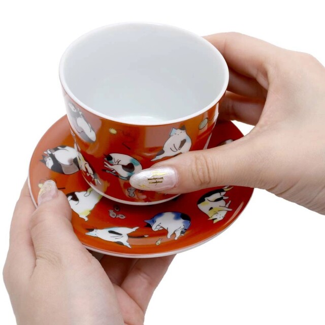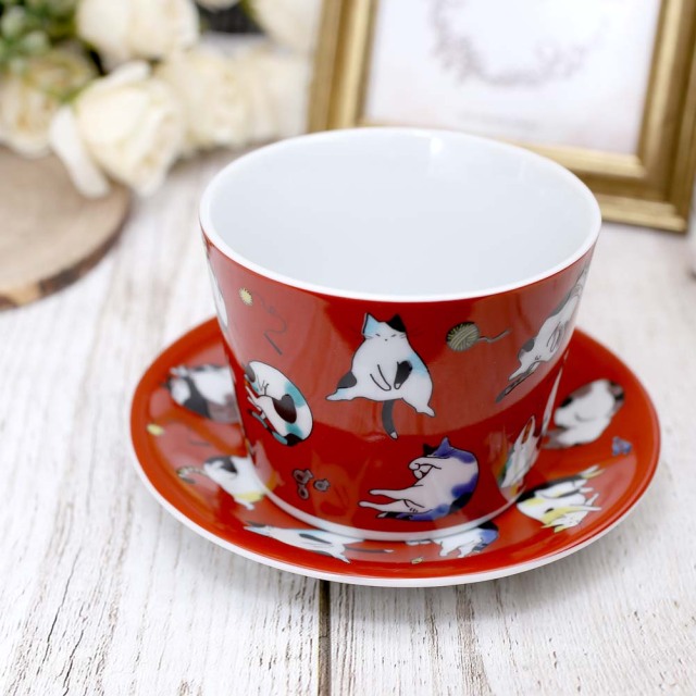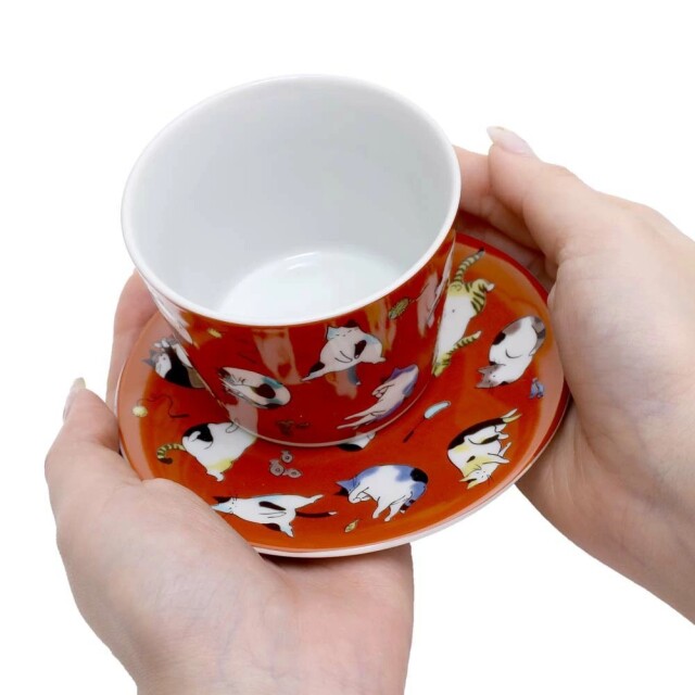 【日本製】九谷焼 ソーサー カップ ティーセット セット売り ネコ 猫 ねこ 7331-SK25