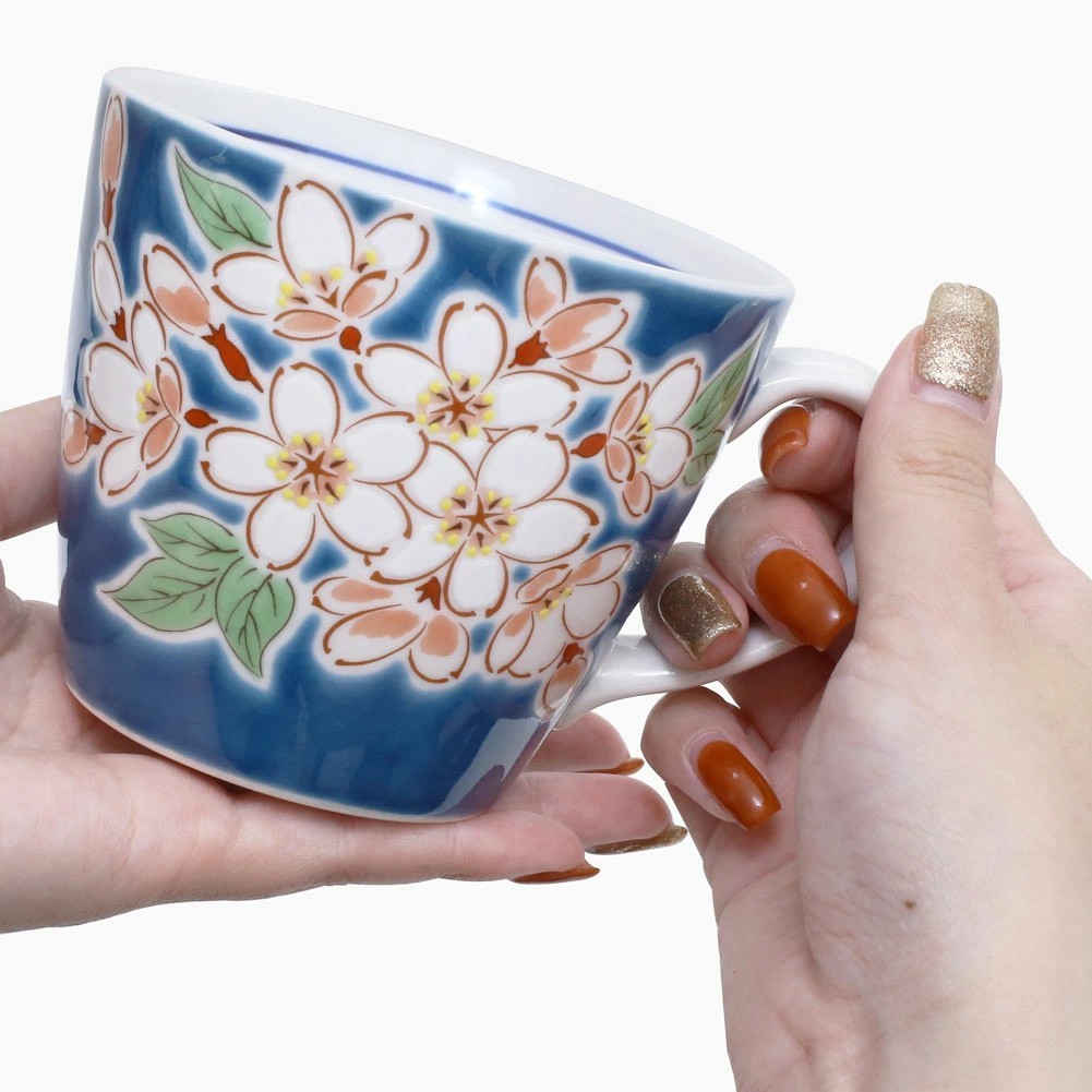 日本製 九谷焼 久谷五彩 磁気 陶器 陶磁器 マグカップ さくら7388-SK25