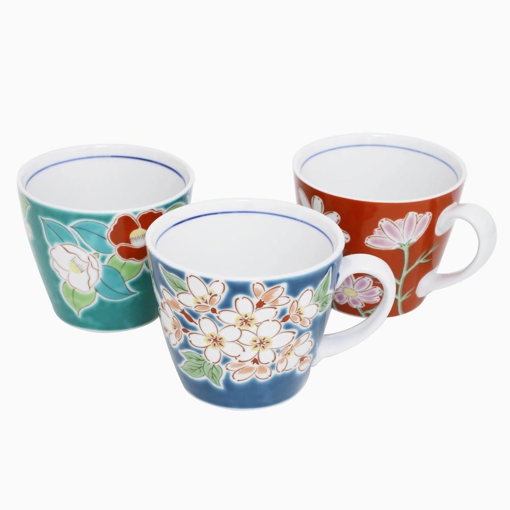 九谷焼の色鮮やかで、個性的な色合いのオシャレなマグカップは、実用的でちょうどいいサイズ感。食器棚が華やかになる楽しさも味わえます。