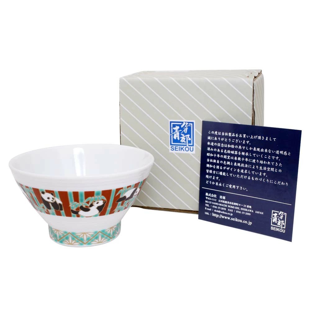 日本製 九谷焼 久谷五彩 磁気 陶器 陶磁器 お茶碗 パンダ7391-SK25