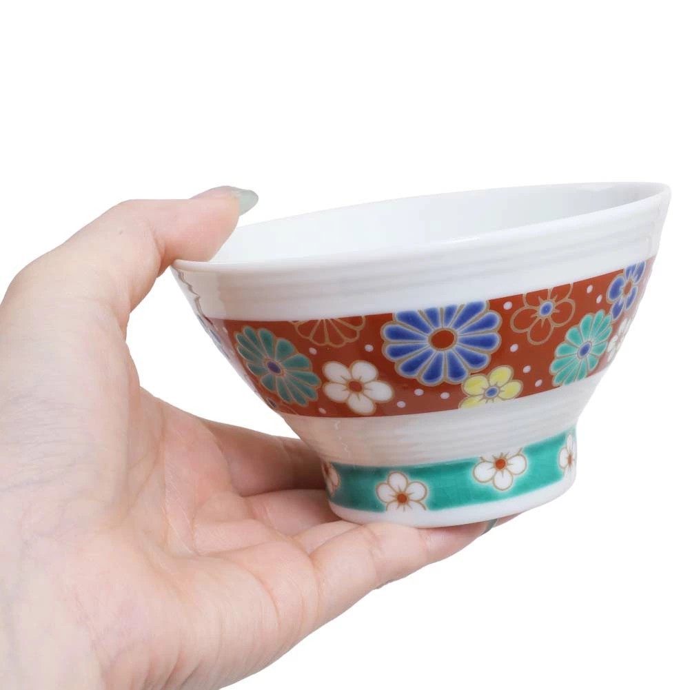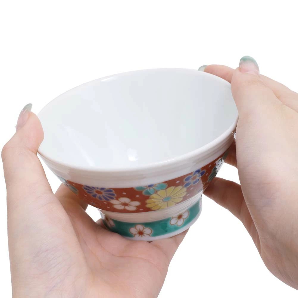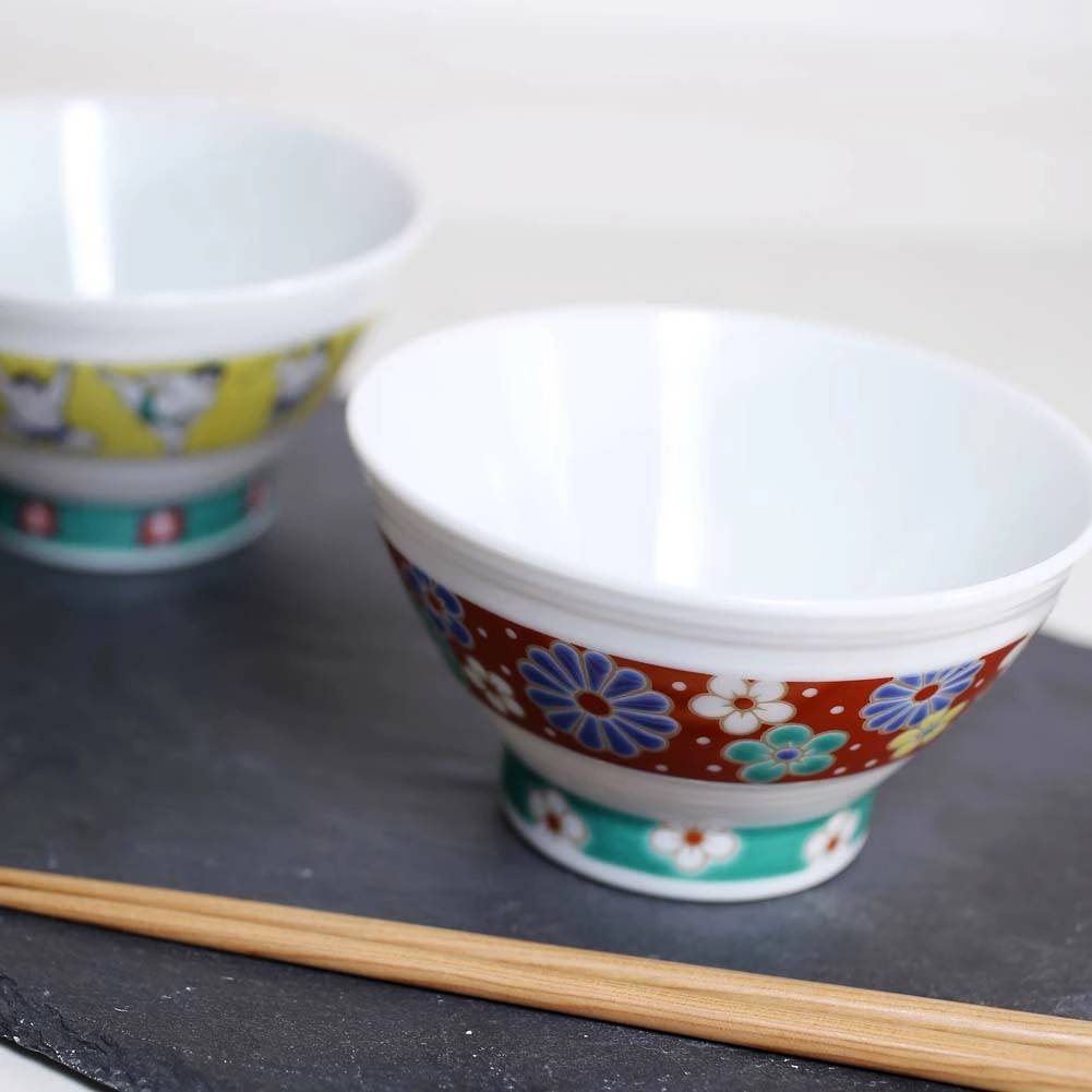 九谷焼の色鮮やかで、個性的な色合いのオシャレなお茶碗は、実用的でちょうどいいサイズ感。食器棚が華やかになる楽しさも味わえます。