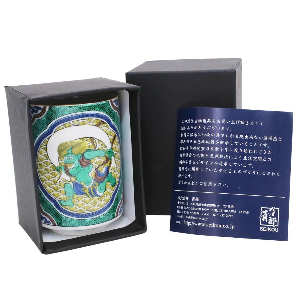 【日本製】九谷焼 北陸伝統工芸 湯呑 風神雷神 7397-SK25