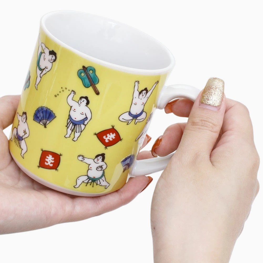 日本製 九谷焼 久谷五彩 磁気 陶器 陶磁器 マグカップ お相撲さん7403-SK25