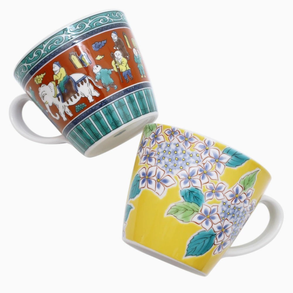 九谷焼の色鮮やかで、個性的な色合いのオシャレなマグカップは、実用的でちょうどいいサイズ感。食器棚が華やかになる楽しさも味わえます。