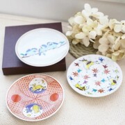 九谷焼は、石川県南部で生産される色絵の磁器です。久谷五彩(赤、黄、緑、紺、紫)という色鮮やかな上絵が特徴です。上絵つきとは、本焼きした陶磁器の釉薬の上に顔料で模様を描き、再度焼く技法です。その歴史は、江戸時代に加賀藩が良質な磁石を発見したのを機に、殖産政策として始められたとされたいます。思わず微笑むデザインと色合い、ちょっとした料理にもお使いいただける上品な小皿です。お祝いの贈り物や海外の方へのお土産としても喜ばれるアイテムです!普段使いにもおもてなしにも喜ばれるてのひらに収まる愛らしいサイズです。薬味やお漬物、一口サイズにカットしたフルーツなどちょっとしたものがおしゃれに盛り付けられます!実用性はもちろん、結婚祝い、記念日、開店祝いなどの贈り物としてや、コレクション、インテリアとしても大人気の小皿です。