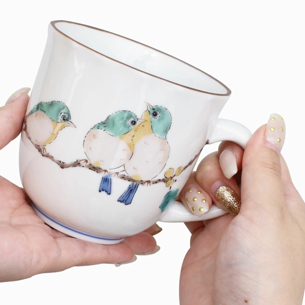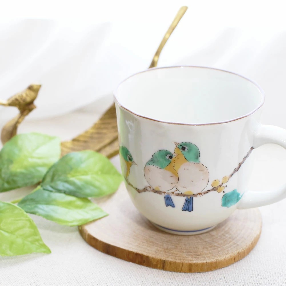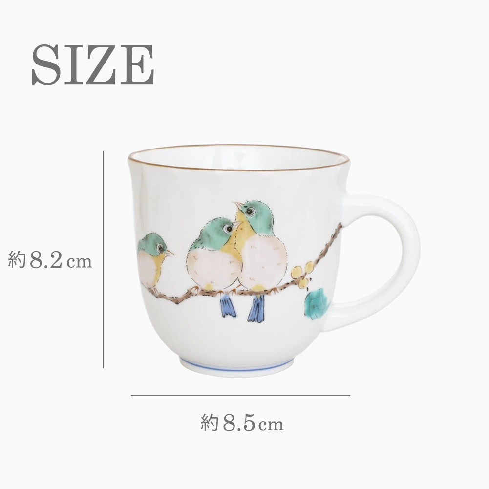 日本製 九谷焼 久谷五彩 磁気 陶器 陶磁器 マグカップ めじろ 鳥7415-SK25