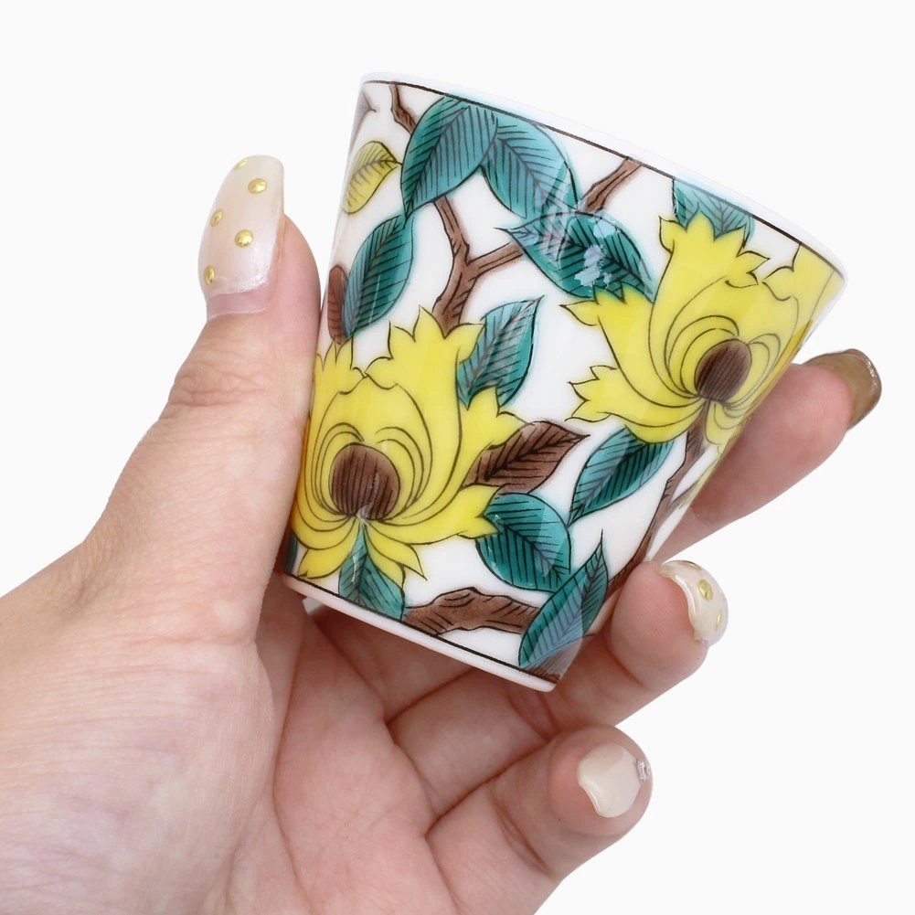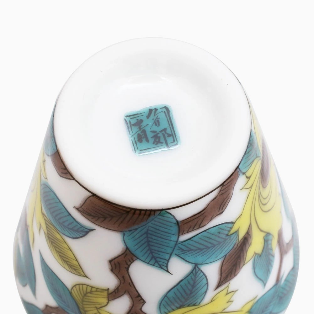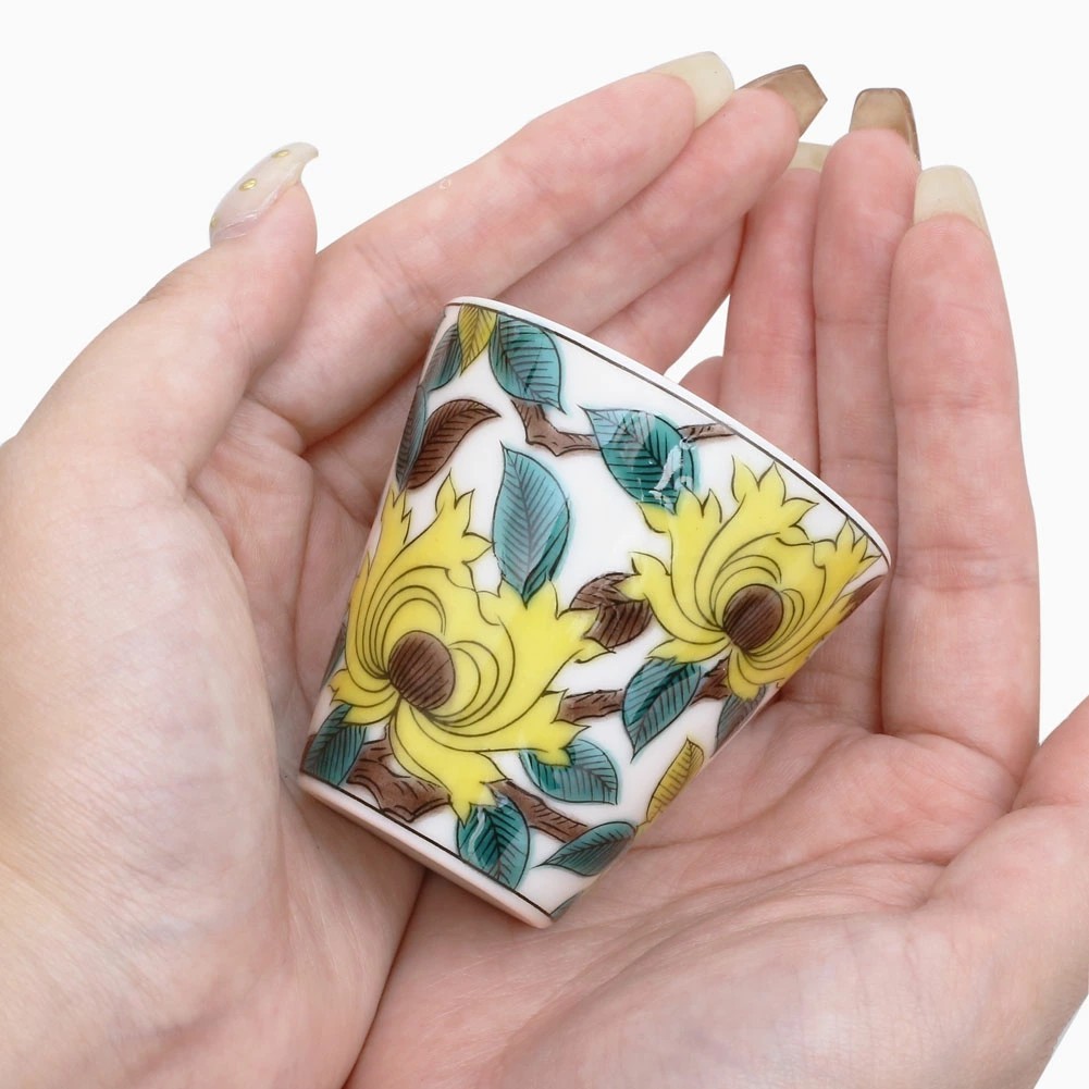 そんな九谷焼を使った、上品な色合いの色鮮やかなで素敵なお猪口です。