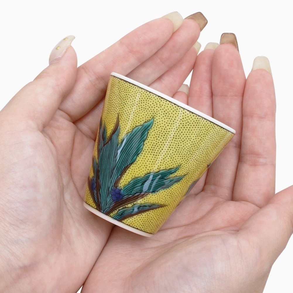 そんな九谷焼を使った、上品な色合いの色鮮やかなで素敵なお猪口です。