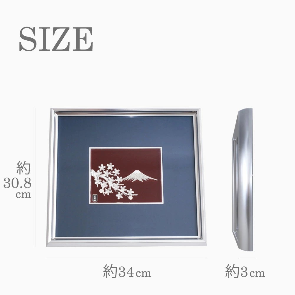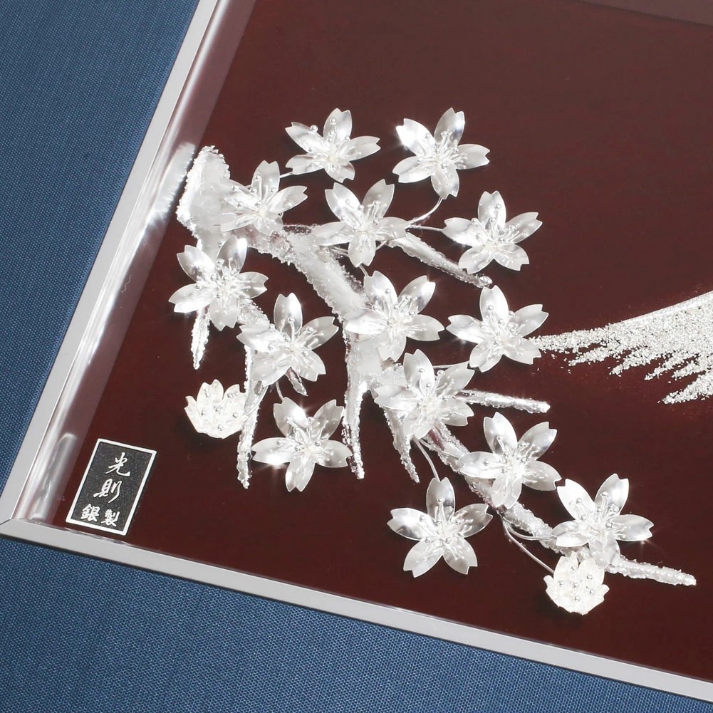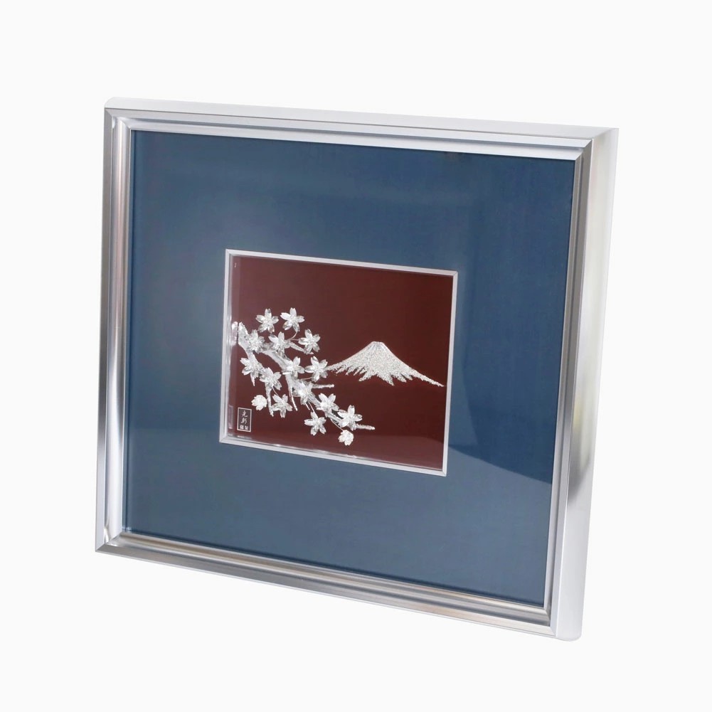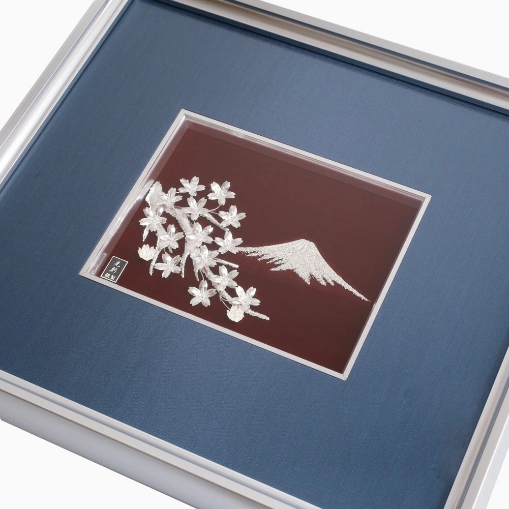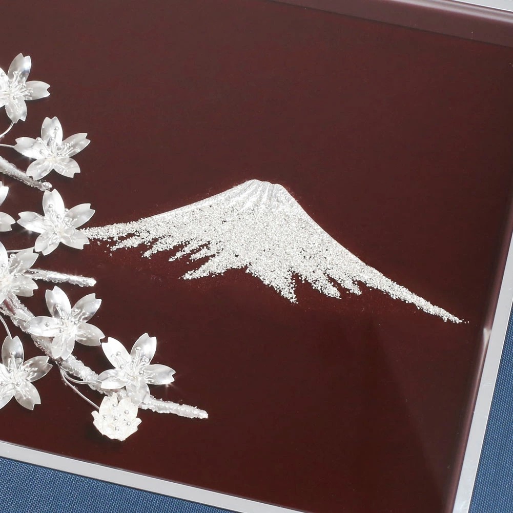 日本を連想させる富士山と桜は伝統技法を用いて純銀で描かれた、圧巻される美しさのアートレリーフです。