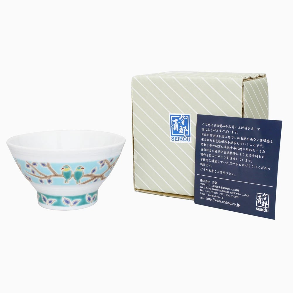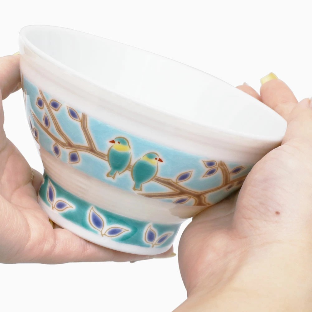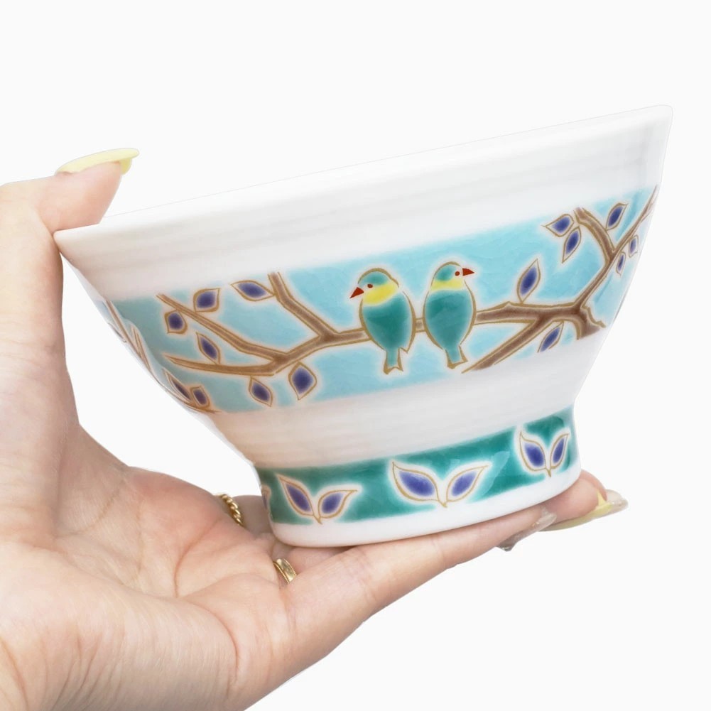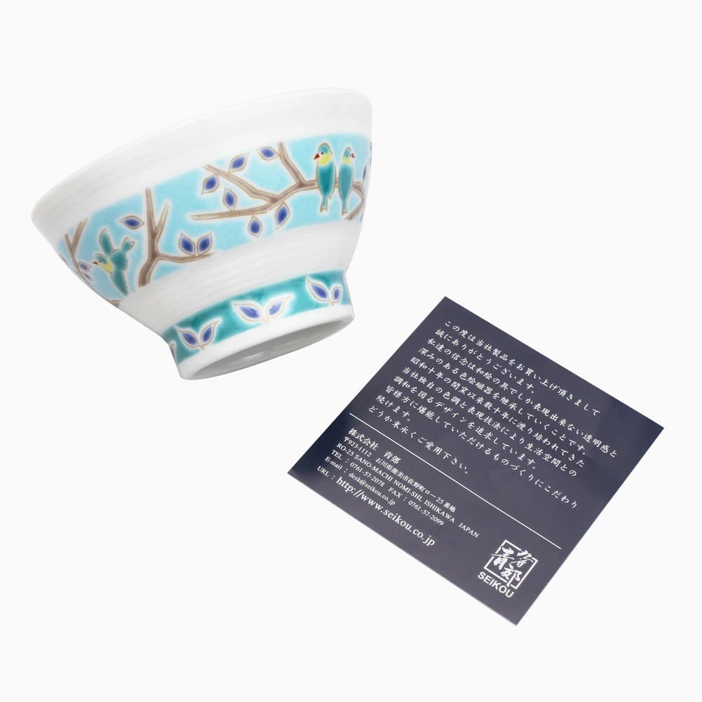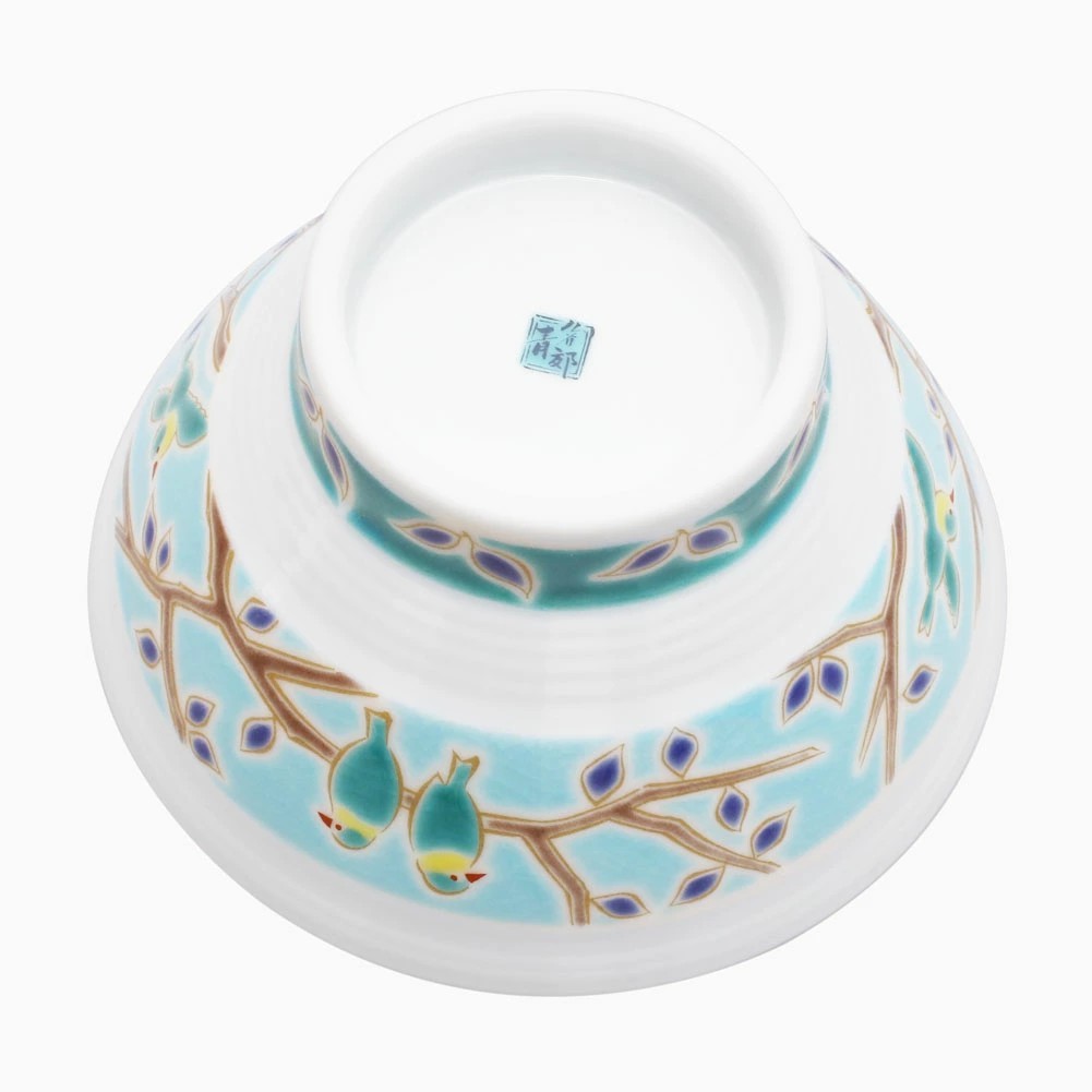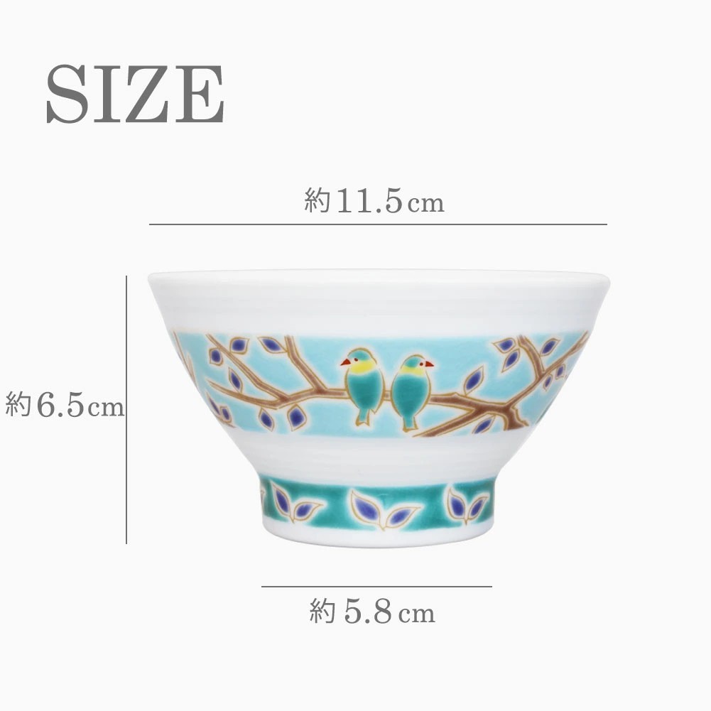 日本製 九谷焼 久谷五彩 磁気 陶器 陶磁器 お茶碗 小鳥 7427-SK25