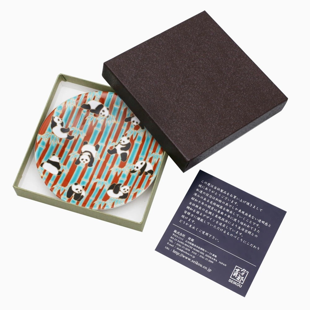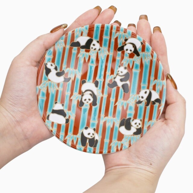 日本製 九谷焼 久谷五彩 磁気 陶器 陶磁器 縁起小皿 パンダ 7439-SK25