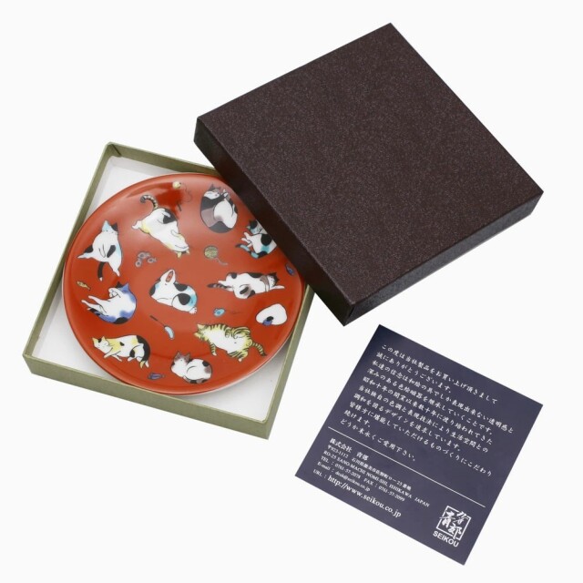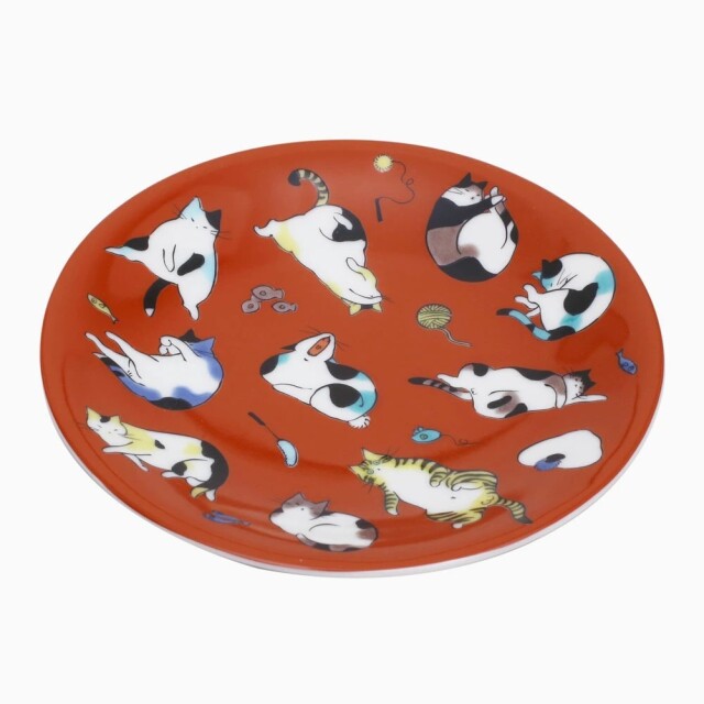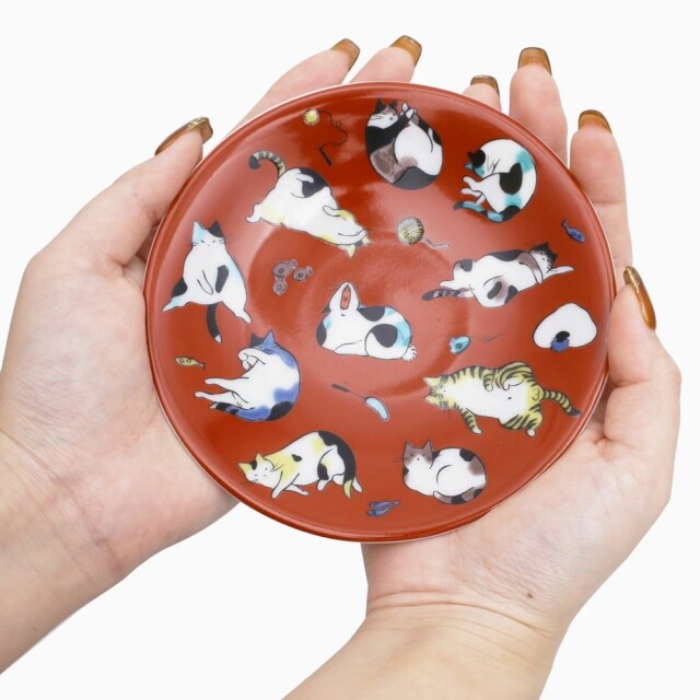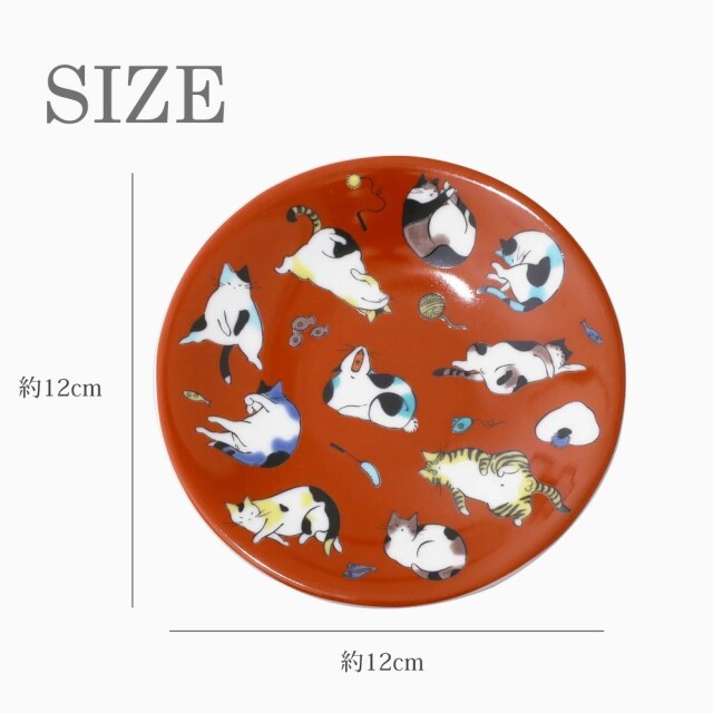 日本製 九谷焼 久谷五彩 磁気 陶器 陶磁器 縁起小皿 ネコ 7441-SK25
