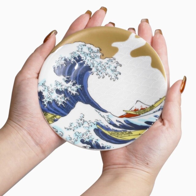 日本製 九谷焼 久谷五彩 磁気 陶器 陶磁器 縁起小皿 北斎 7449-SK25