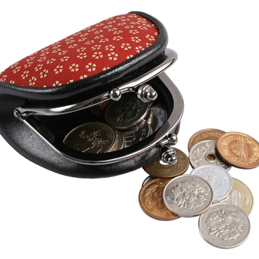 柔らかな手触りが人肌に近いといわれている鹿革と漆を融合させ、様々な伝統の模様を彩る、印伝の魅力を育んできた家伝の技。高級感ある、印伝ならではの鹿革と漆の風合いをしっかりと手のひらでお愉しみいただけます。四季のある日本では春を愛でる気持ちも強く、桜の持つ神聖な美に喜びやあはれを感じ、模様も年代を問わず愛されています。小銭を沢山入れても型崩れしにくいマチ付きで、アクセサリーや小物を収納するケースとしてもお使いいただけます。コロンと可愛いコンパクトながま口小銭入れは、ちょっとしたお出かけや自販機などでさっと使いたいときにも便利です☆一目で引かれる印傳屋の小銭入れは、プレゼントとしても喜ばれる逸品です。