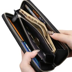 ラウンドファスナーでスムーズに開閉できスタイリッシュな形と機能を兼ね備えた長財布。12のカードポケットや二つのマルチポケットで収納力満点!
