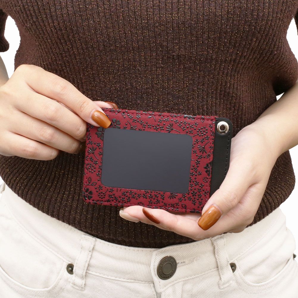 通勤や通学にかかせないパスケース。定期や電子マネーカードを入れて、公共機関も快適に利用することができます。右上部分に穴が開いているので、チェーンやストラップなどを通して使用することも可能です。