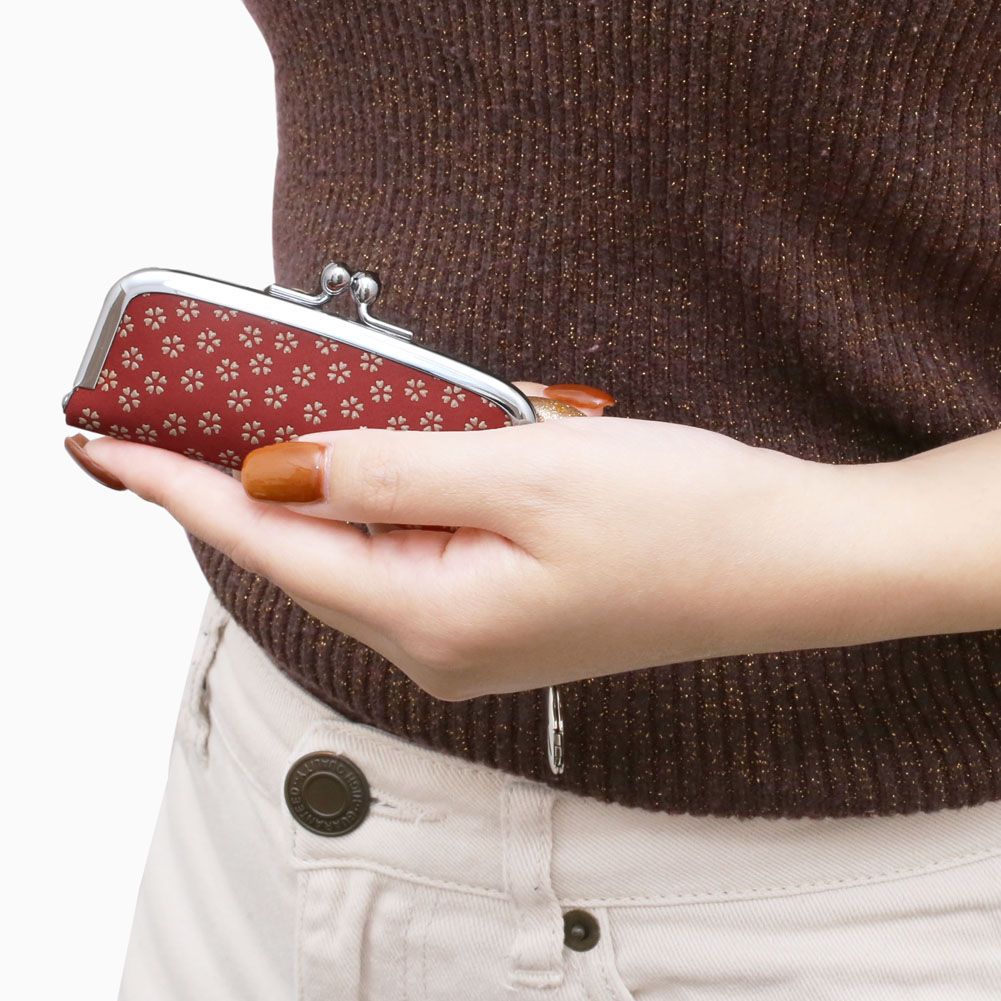 柔らかな手触りが人肌に近いといわれている鹿革と漆を融合させ、様々な伝統の模様を彩る、印伝の魅力を育んできた家伝の技。高級感ある、印伝ならではの鹿革と漆の風合いをしっかりと手のひらでお愉しみいただけます。四季のある日本では春を愛でる気持ちも強く、桜の持つ神聖な美に喜びやあはれを感じ、模様も年代を問わず愛されています。シンプルな横型の印鑑入れ。がま口が大きく開き、印鑑が出し入れしやすいデザインです。最大15mmサイズの印鑑が収納となっております。しっとりとした手触りの印鑑入れは、小さくてかわいい朱肉ストラップ付!これ一つでとても便利です☆一目で引かれる印傳屋の印鑑入れは、プレゼントとしても喜ばれる逸品です。