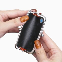シンプルな横型の印鑑入れ。がま口が大きく開き、印鑑が出し入れしやすいデザインです。最大15mmサイズの印鑑が収納となっております。