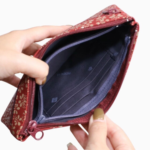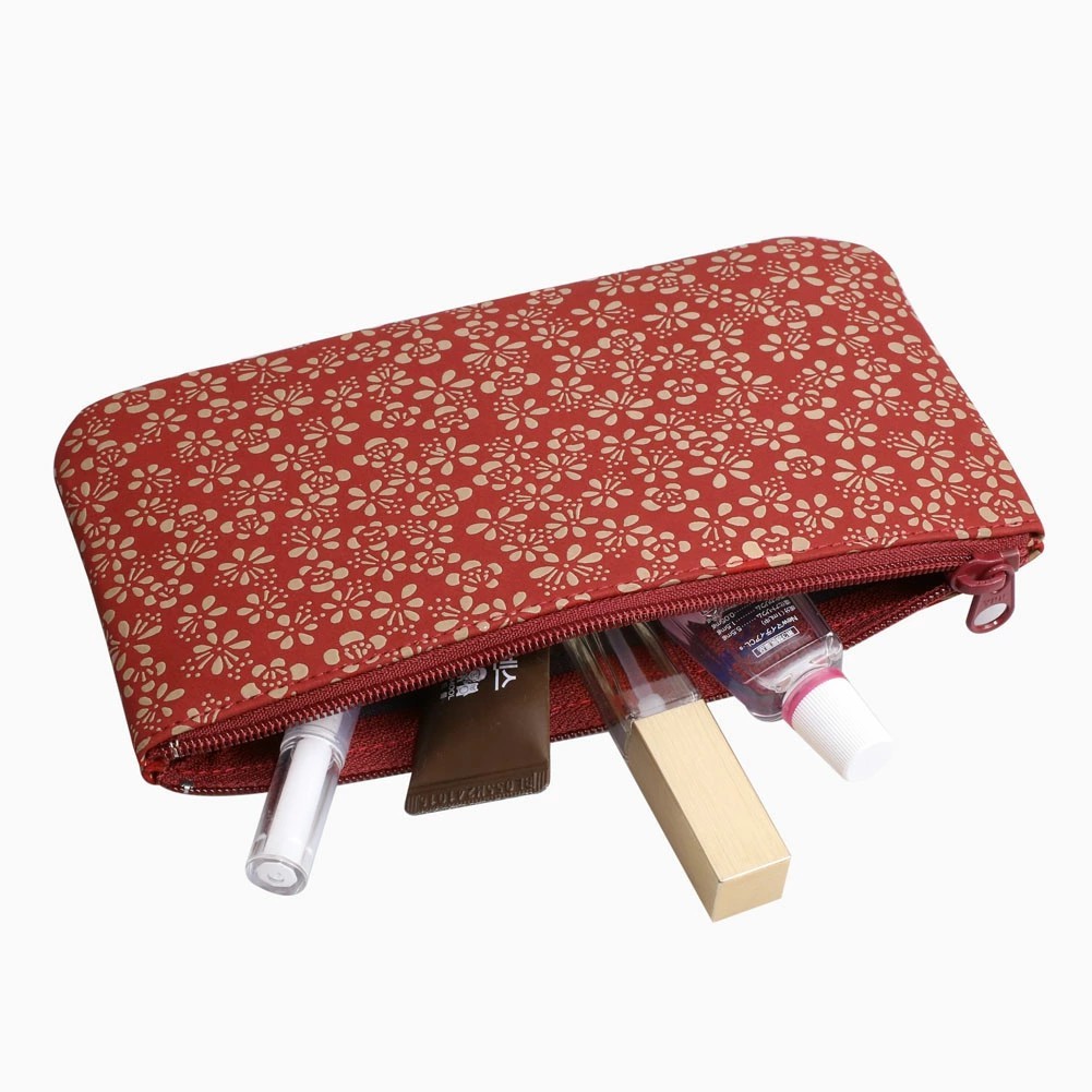 通帳やパスポート、お薬手帳などを収納するのにぴったりな薄型ポーチ。中にはポケットもあり、診察券などのカードもきれいに収納できます。また印鑑や、リップクリームなどの小物も入るのでマルチに活躍します。