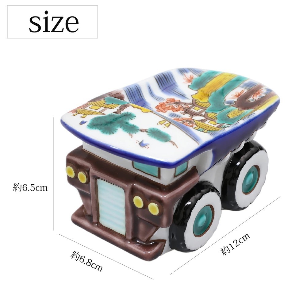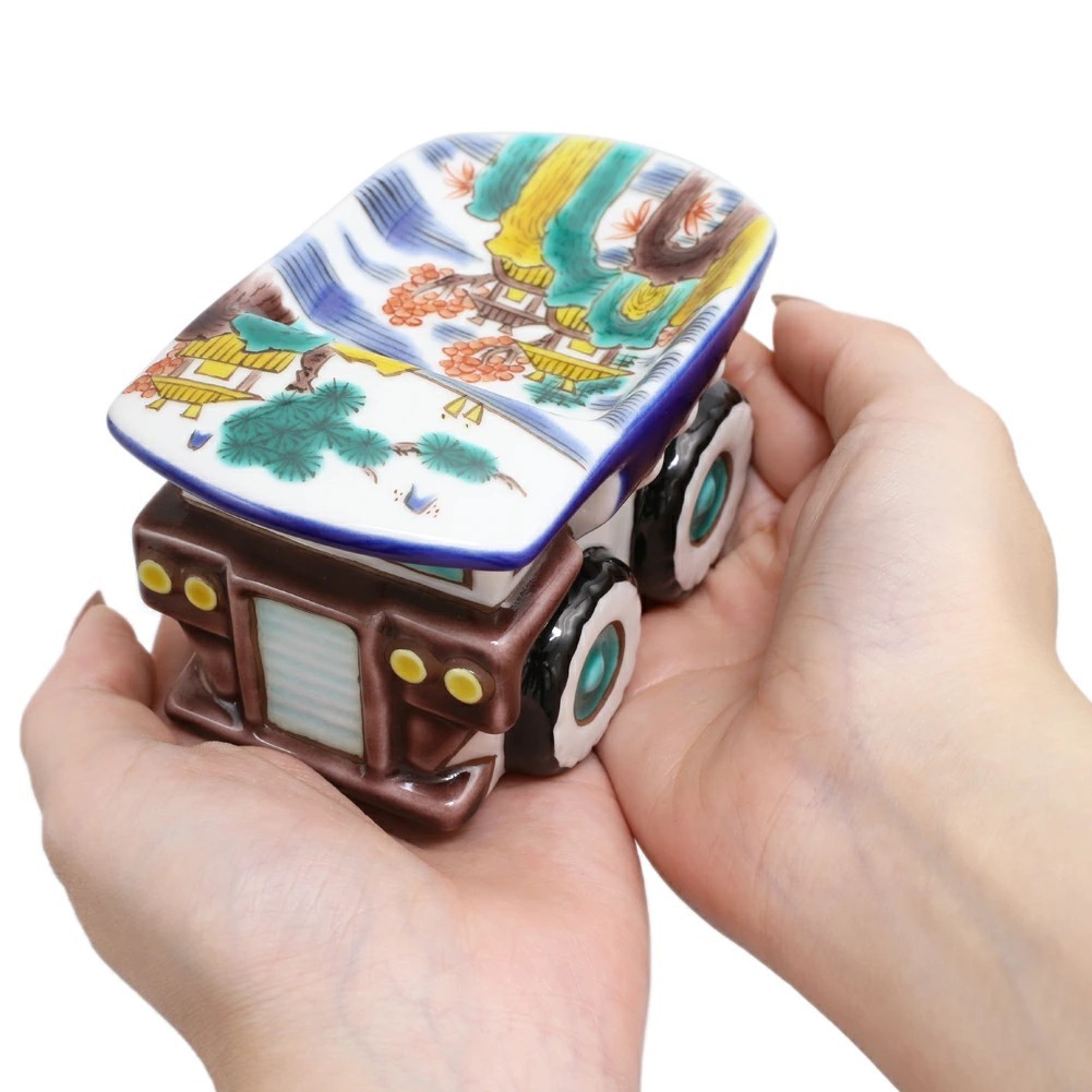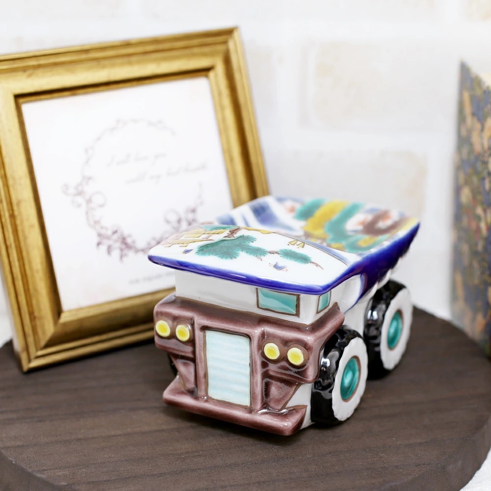九谷焼乗り物シリーズ第一弾として制作された九谷焼ダンプトラックは、インテリアとしてはもちろん、玄関近くに置いて車の鍵や家の鍵置きにも◎