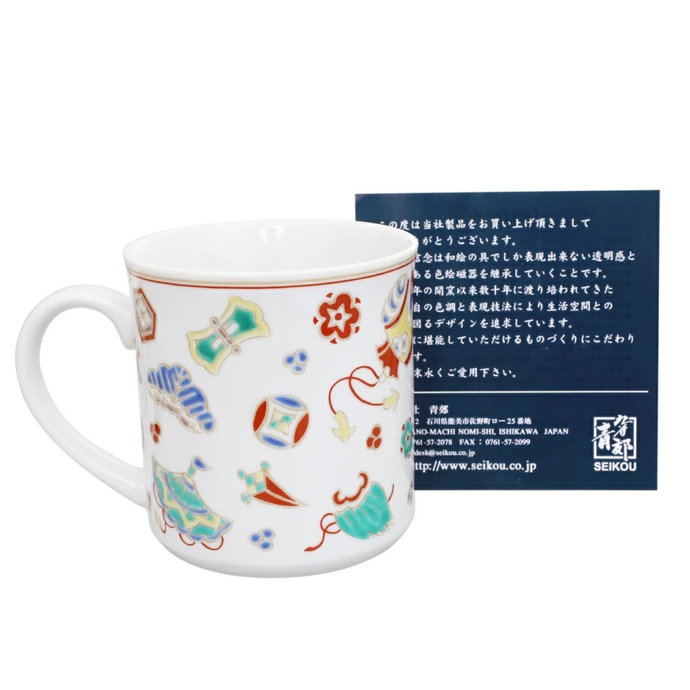 | 製品名: | 日本製 九谷焼 久谷五彩 磁気 陶器 陶磁器 マグカップ 宝尽くし 7481-SK25 |
