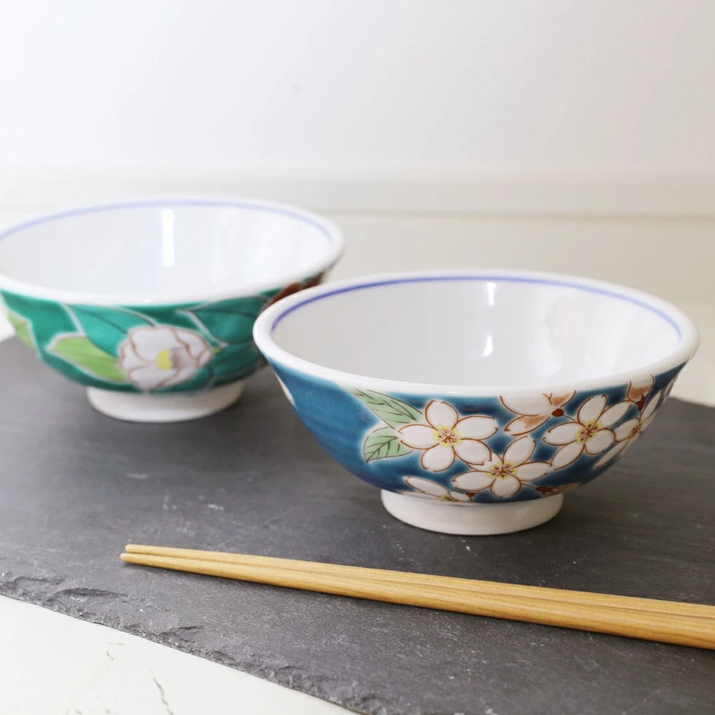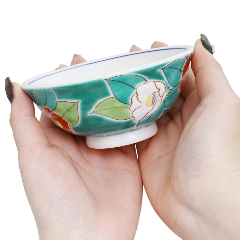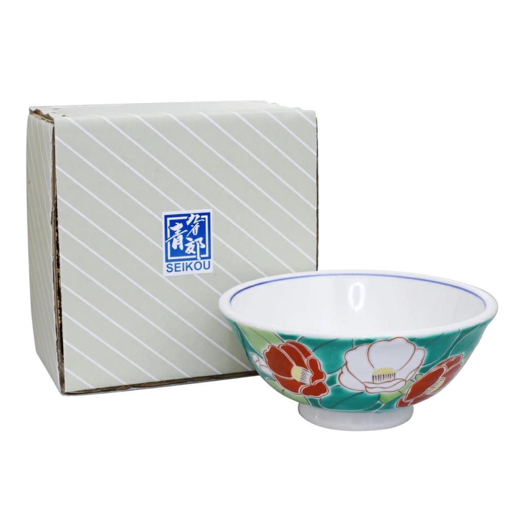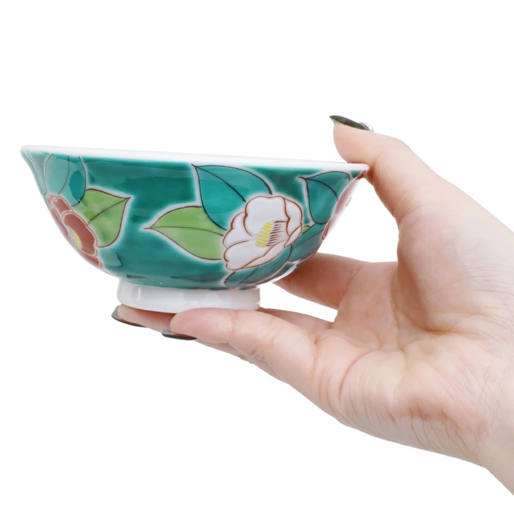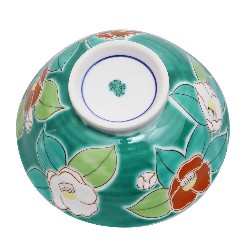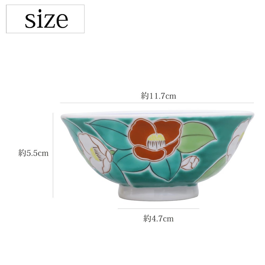 日本製 九谷焼 久谷五彩 磁気 陶器 陶磁器 お茶碗 椿 7484-SK25