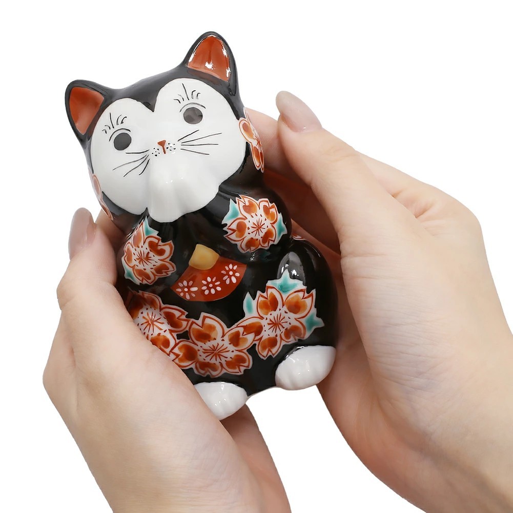九谷焼は、石川県南部で生産される色絵の磁器です。久谷五彩(赤、黄、緑、紺、紫)という色鮮やかな上絵が特徴です。九谷焼の色彩の深みと厚く盛り上げる着彩の、風合いをお楽しみください。結婚祝いや出産祝い、開店祝いなど贈り物やコレクションとしてもおススメの逸品です。360年という歴史ある九谷焼。江戸初期に誕生したとされる古九谷の画風は今もなお人気があり、また明治期には庄三風など絢爛豪華な九谷焼が輸出され、ジャパン・クタニとして海外でも高く評価されています。思わず撫でたくなる愛らしいお祈り猫は、毎日を華やかに彩ってくれます。専用の紙箱に入れてのお届け!ご希望の方には無料のプレゼント包装も受けたまわります。