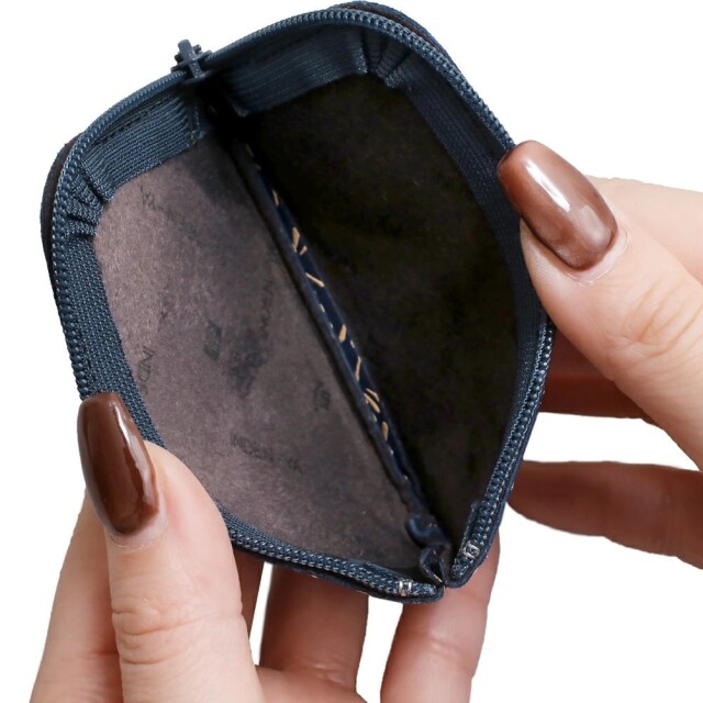 遊び心のある大人っぽい小銭入れは、手のひらにちょうど良く馴染むサイズ感。小物などを入れてマルチに活用もできます。