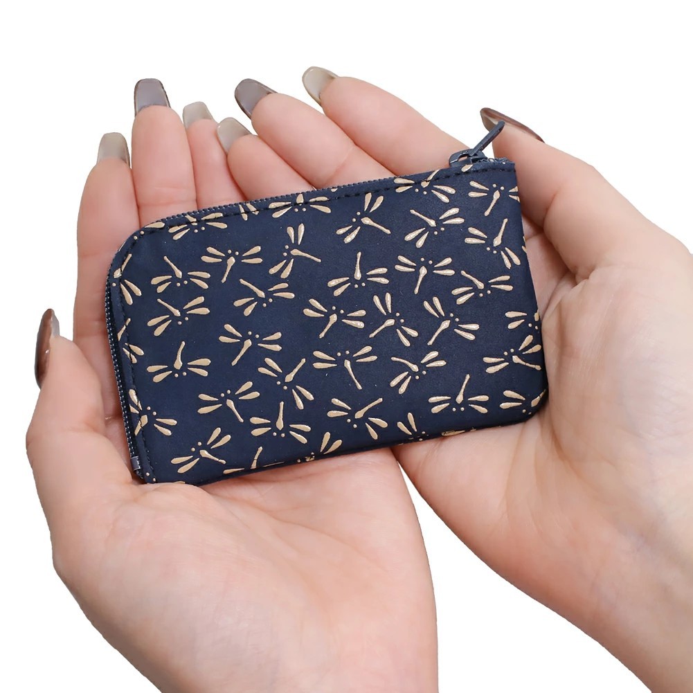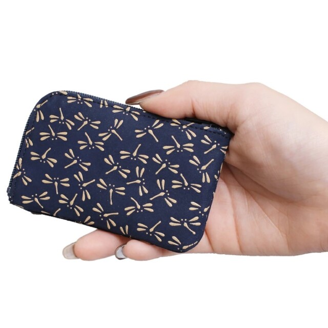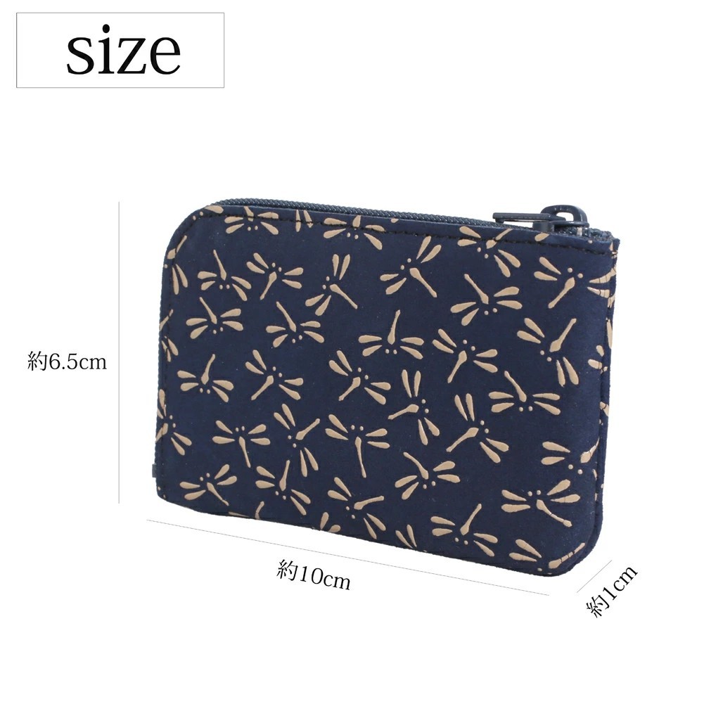 柔らかな手触りが人肌に近いといわれている鹿革と漆を融合させ、様々な伝統の模様を彩る、印伝の魅力を育んできた家伝の技。高級感ある、印伝ならではの鹿革と漆の風合いをしっかりと手のひらでお愉しみいただけます。とんぼは「あきつ」ともいわれ、日本の古称である「あきつしま」に通じます。中世には武士の間で「勝虫(かつむし)」とも呼ばれたことからとんぼ模様は武具や装束に多用されました。ポケットにも入れられる薄型でコンパクトなデザイン。小銭はもちろん、外ポケットにはICカードや三つ折りのお札も入れられるのでちょっとしたお出かけにも便利です♪遊び心のある大人っぽい小銭入れは、手のひらにちょうど良く馴染むサイズ感。小物などを入れてマルチに活用もできます。一目で引かれる印傳屋の小銭入れは、プレゼントとしても喜ばれる逸品です。