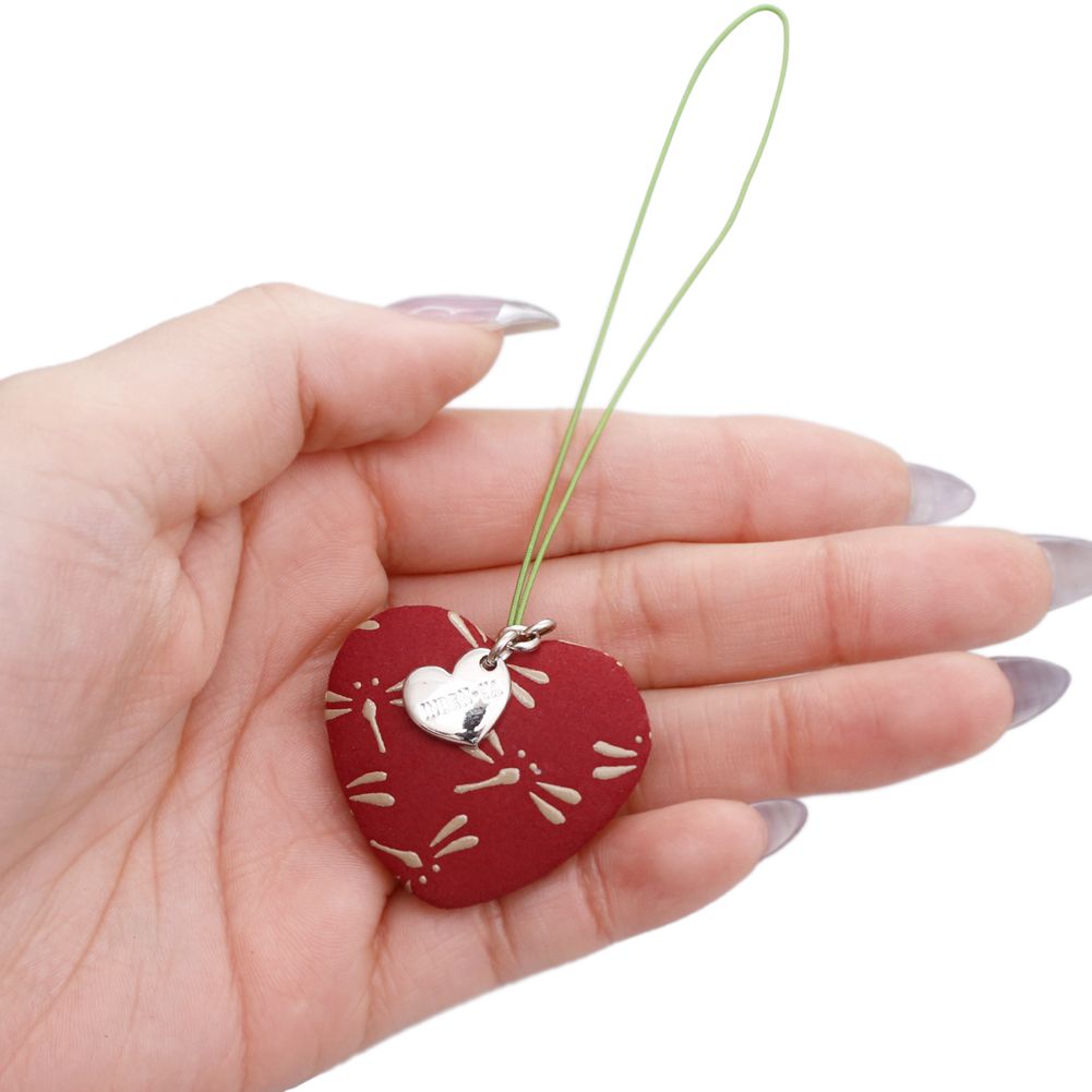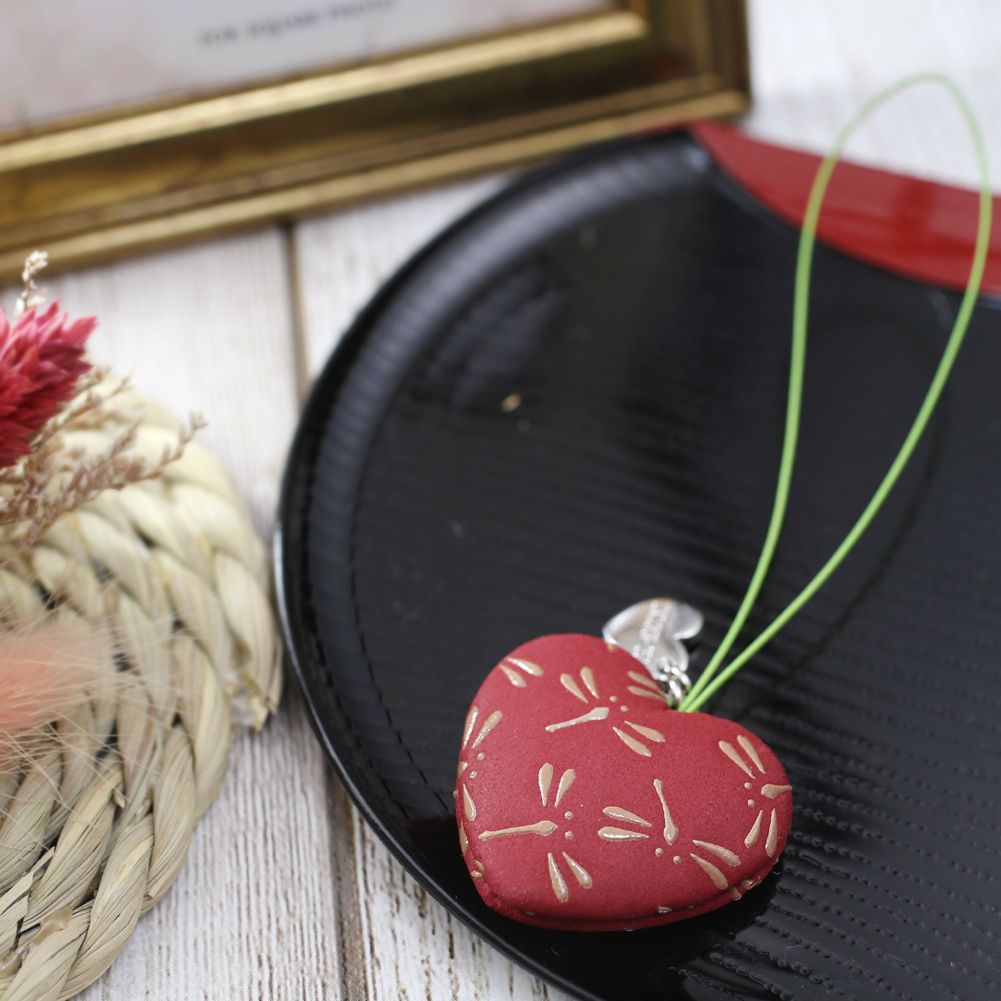 日本製 印伝/INDENYA/印傳屋 ハート型ストラップ/キーホルダー 7517-IY25