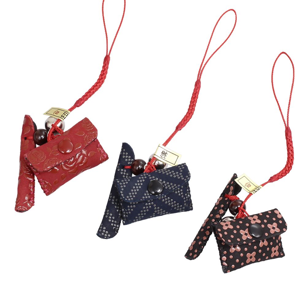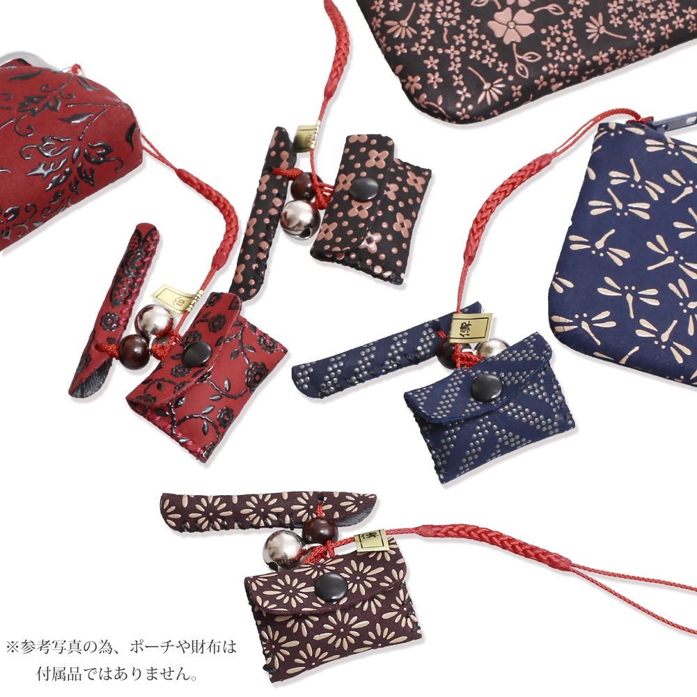日本製 印伝/INDENYA/印傳屋 ストラップ/キーホルダー/チャームポーチ型 7520-IY25
