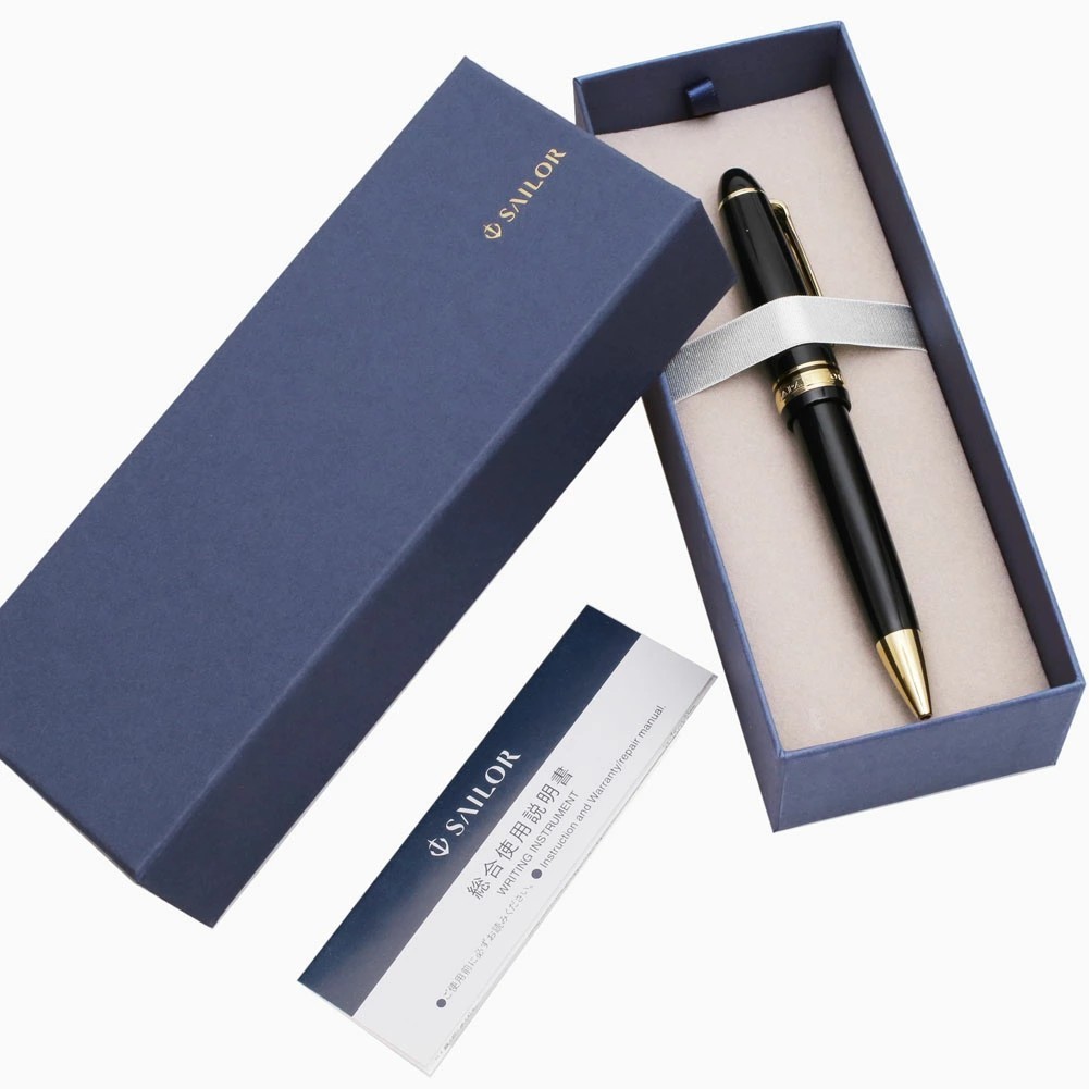 セーラー万年筆を代表する「プロフィット21」シリーズのボールペン。きめ細かさと力強さが融合し、丸みのあるクラシックな万年筆フォルムが特徴。万年筆のような書き味を追求した低重心設計で、ペン先側が重く設計されているのため筆圧をかけなくても文字が安定します。また回転式メカニズムで使いやすく、滑らかな書き心地のボールペンです。1911年に広島県呉市で阪田久五郎により創業し、日本初の国産万年筆を生み出して以来、金ペン先と書き味にこだわり続けてきた老舗筆記具メーカーです。クラシック形状のスタイリングとベーシックなカラーで、カジュアルシーンからフォーマルシーンまで幅広く活用できます。高級感のあるボールペンは自分へのご褒美にはもちろん、お祝い事や大切な人へのプレゼントにも大変喜ばれる逸品です。専用の化粧箱に入っており、見た目にも豪華な仕様になっております。