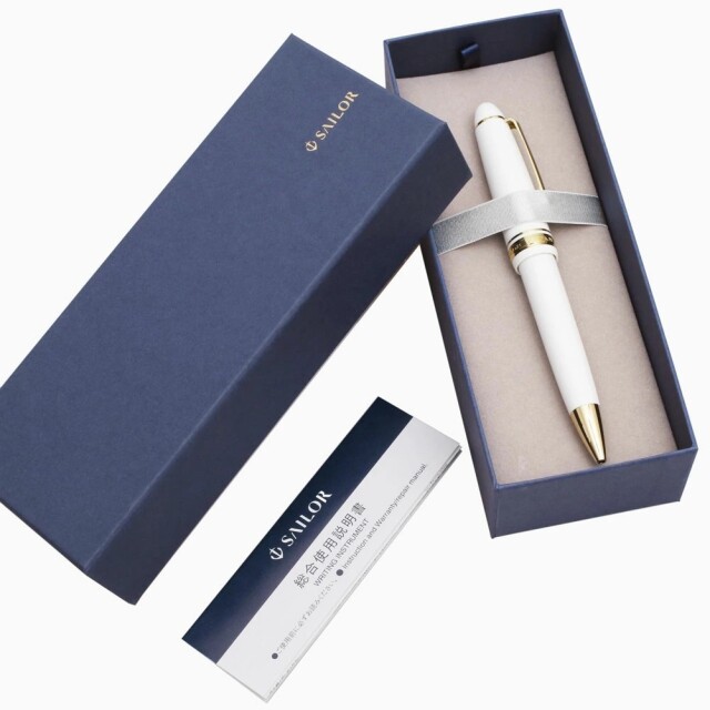 セーラー万年筆を代表する「プロフィット21」シリーズのボールペン。きめ細かさと力強さが融合し、丸みのあるクラシックな万年筆フォルムが特徴。万年筆のような書き味を追求した低重心設計で、ペン先側が重く設計されているのため筆圧をかけなくても文字が安定します。また回転式メカニズムで使いやすく、滑らかな書き心地のボールペンです。1911年に広島県呉市で阪田久五郎により創業し、日本初の国産万年筆を生み出して以来、金ペン先と書き味にこだわり続けてきた老舗筆記具メーカーです。クラシック形状のスタイリングとベーシックなカラーで、カジュアルシーンからフォーマルシーンまで幅広く活用できます。高級感のあるボールペンは自分へのご褒美にはもちろん、お祝い事や大切な人へのプレゼントにも大変喜ばれる逸品です。専用の化粧箱に入っており、見た目にも豪華な仕様になっております。