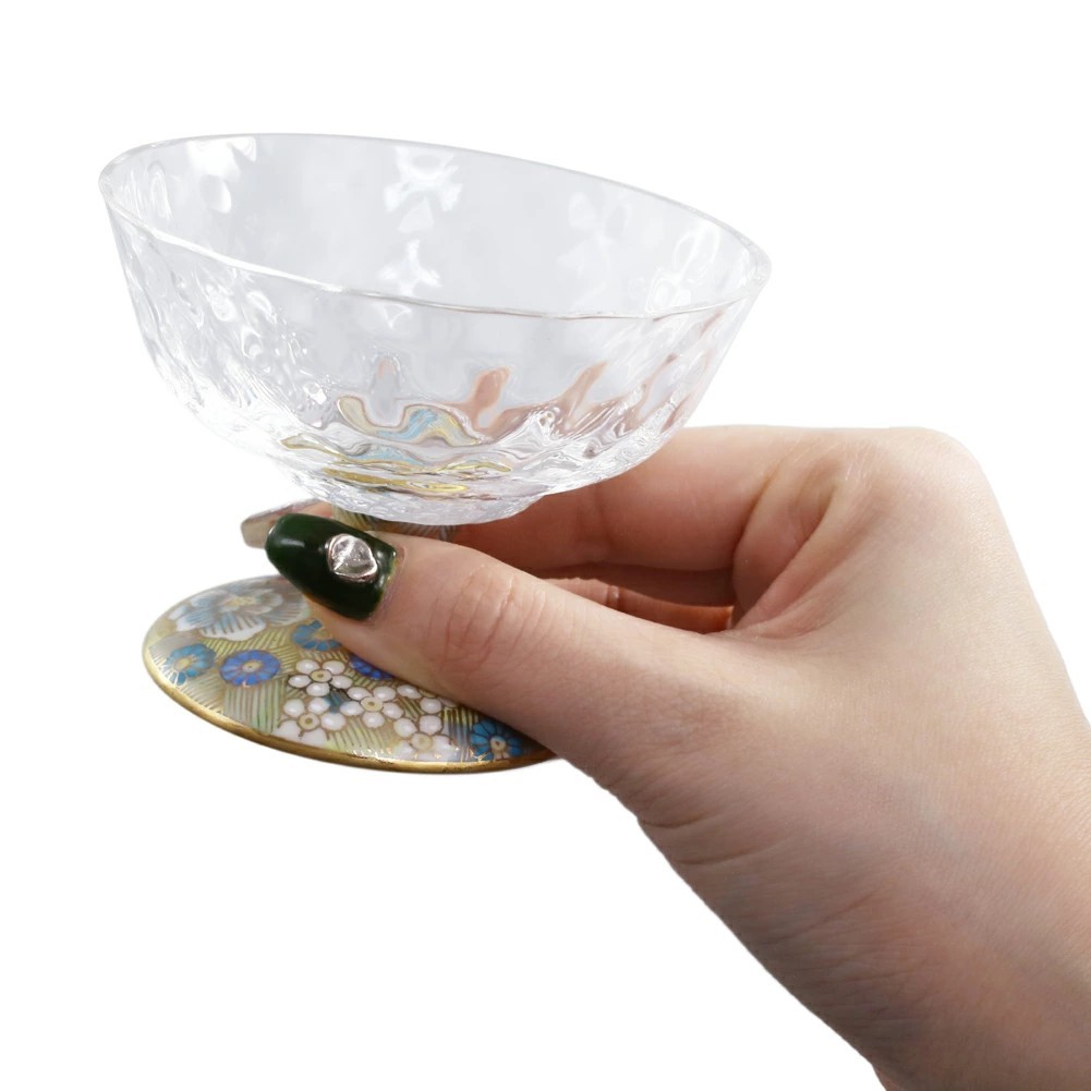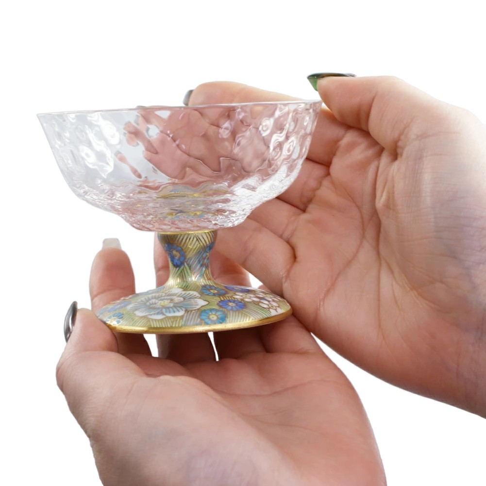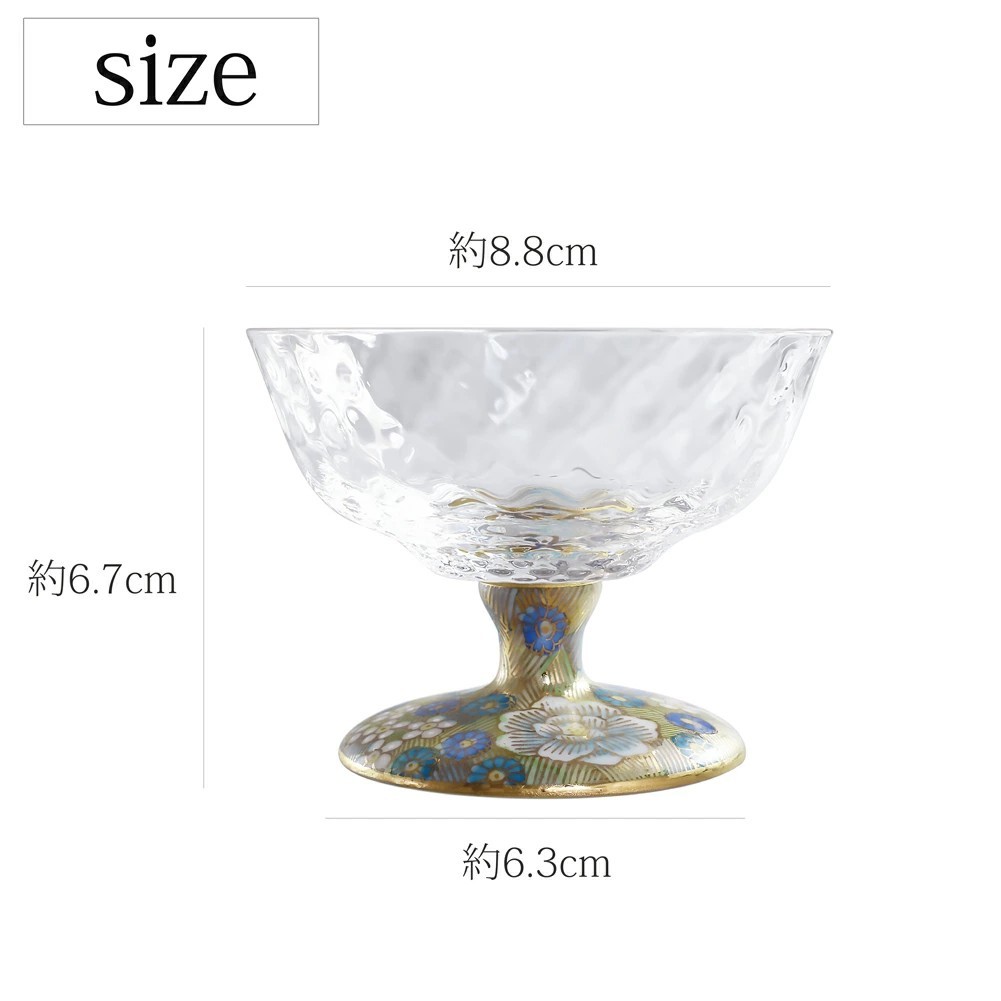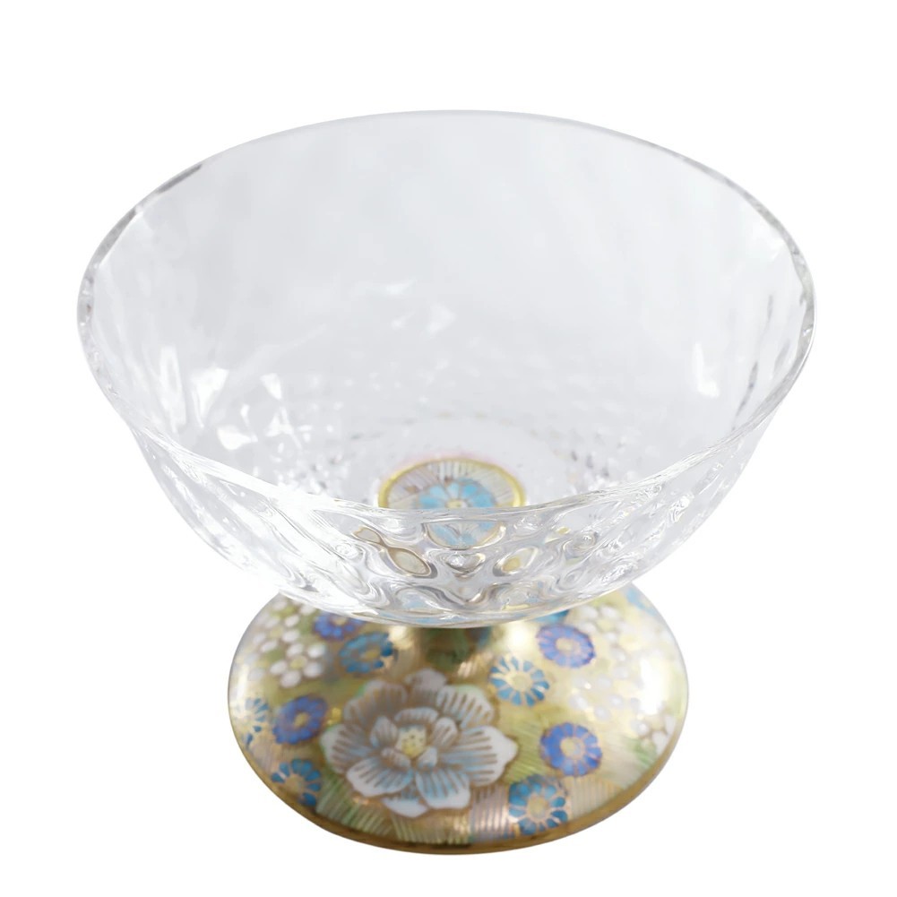 九谷焼の伝統技法で仕上げた磁器製の脚付きデザートグラス。
